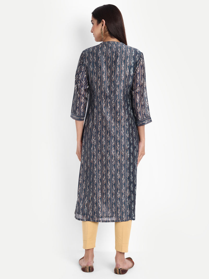 Women Blue Ethnic Motifs Printed Kurta