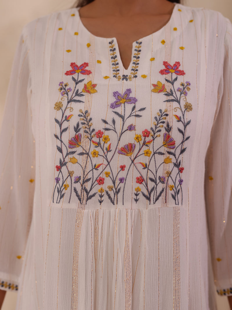 DOBBY CHIKANKARI EMBROIDERED KURTI