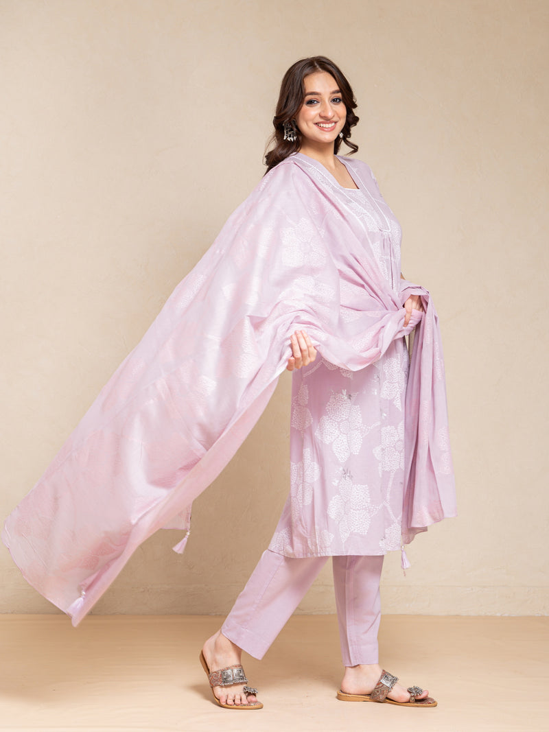 MUL COTTON KHADI PRINTED FLARED 3PC KURTA SET