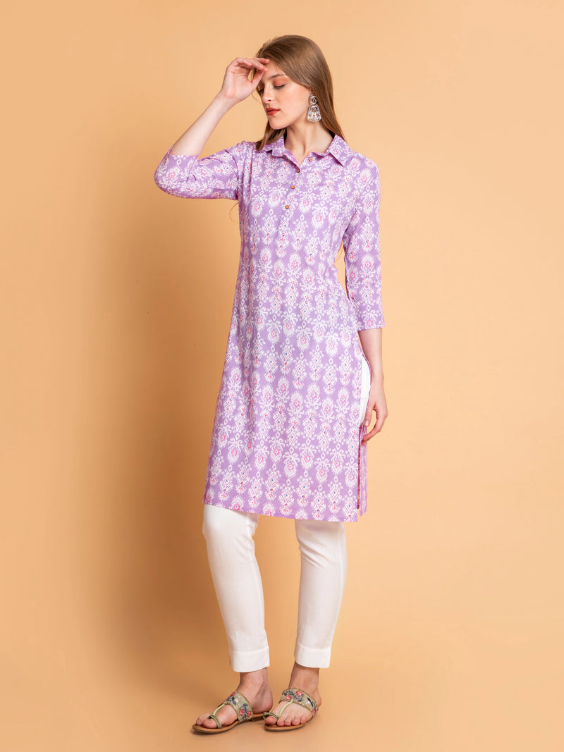 Rayon Contemporary Printed Kurti with Shirt Collar