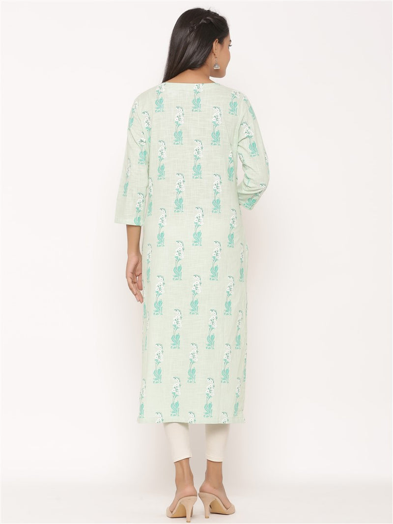 COTTON PRINTED LONG KURTI WITH STAND COLLAR