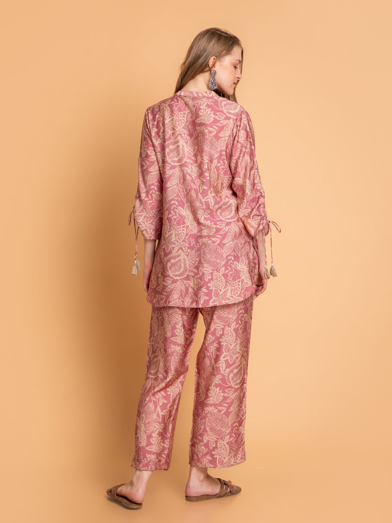 Women ConFetti Pink Viscose Crepe Digital Print High-Low Co-Ord Set