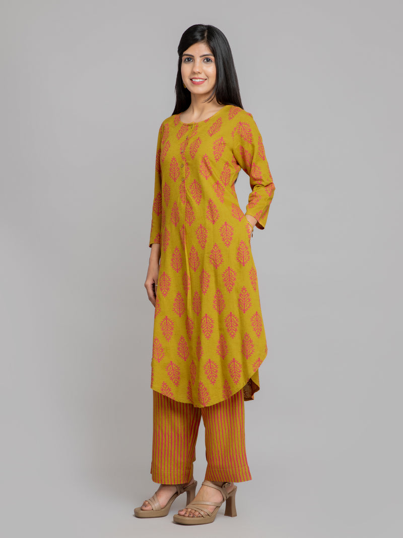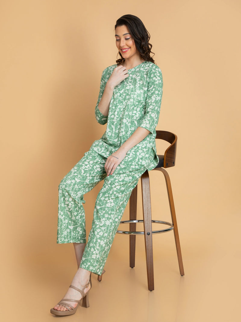 Women Burnished Cotton Slub Printed Co-Ord Set