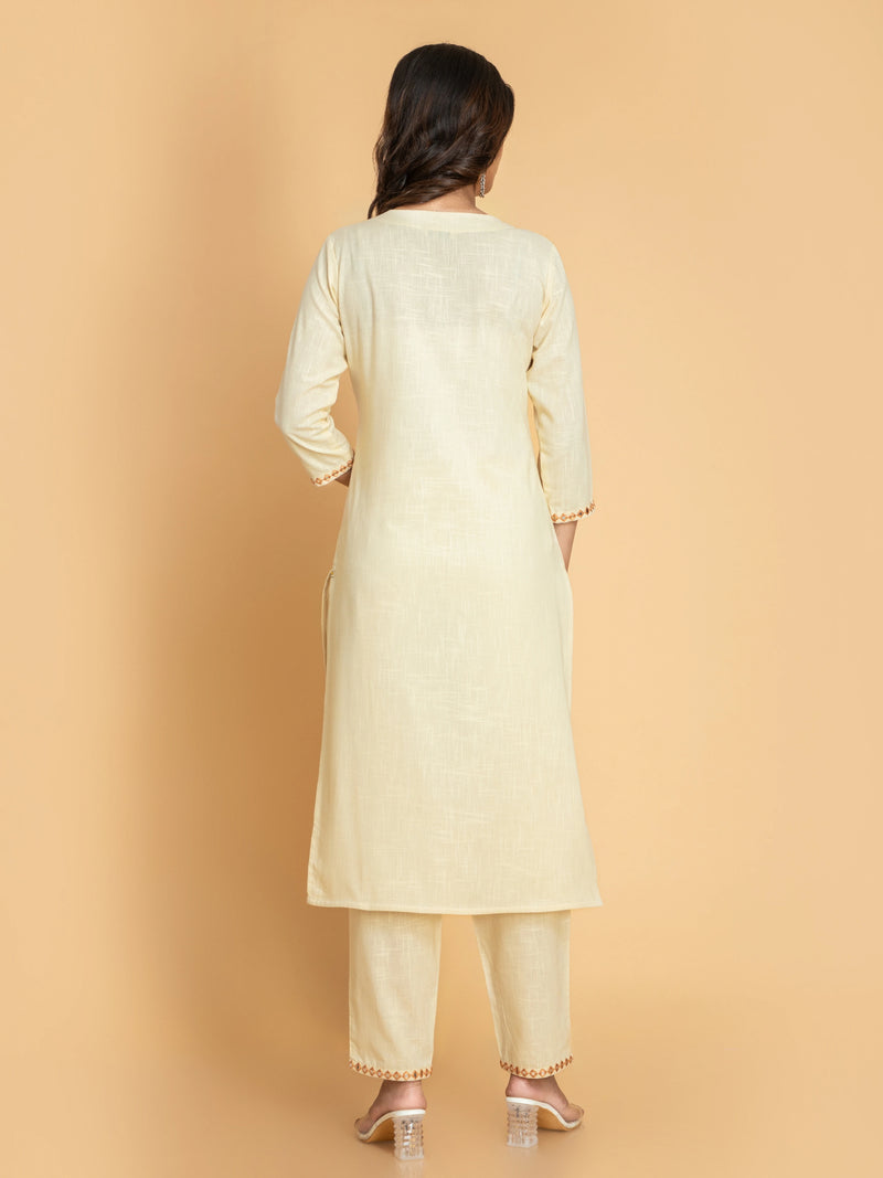 Women Cream MIRROR EMBROIDERY 3PC KURTA PANT SET