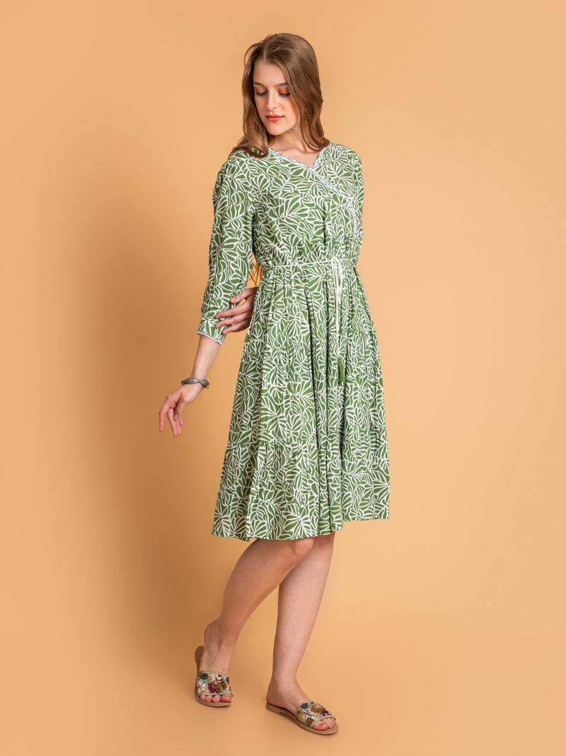 Women Fair Green PRINTED SCHIFFLI CO-ORD SET HAND CRAFTED