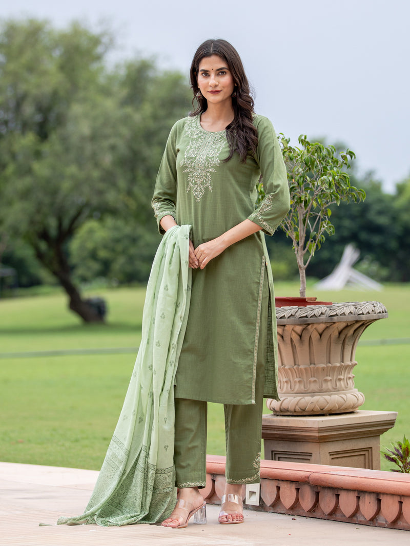 Women Calla Green 3PC CHIKANKARI EMBROIDERED KURTA PANT SET
