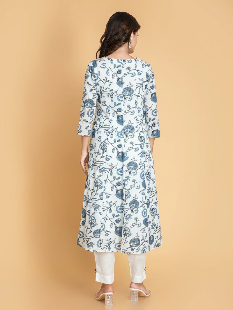 Women Indigo Blue MUL-COTTON PRINTED ANARKALI 3PCS SET
