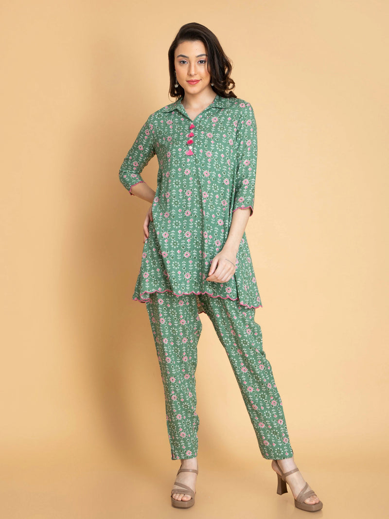 Women Jade Green 2 PCS CO-ORD SET WITH TASSEL DETAILS