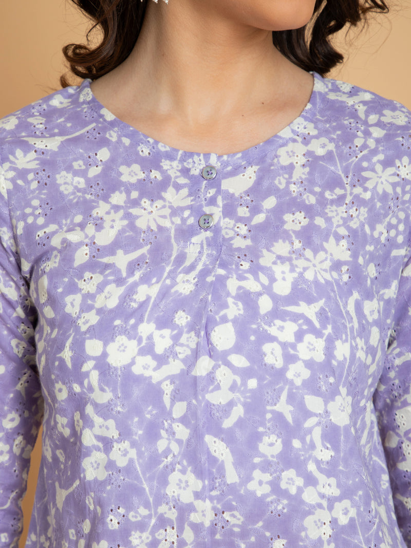 Women Lilac PRINTED SCHIFFLI CO-ORD SET HAND CRAFTED