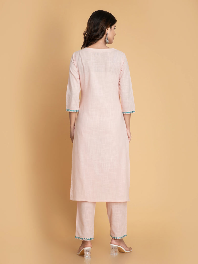 Women Light Pink MIRROR EMBROIDERY 3PC KURTA PANT SET