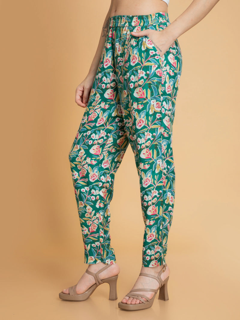 Women Pista Green MUL-COTTON PRINTED KURTI WITH DORI LATKAN DETAIL