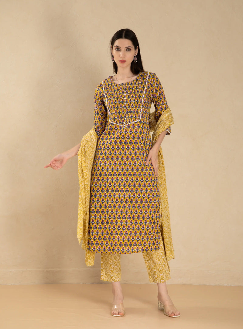 Women Sunflower mul-cotton-3pc-kurta-set-with-pintuck-lace-details