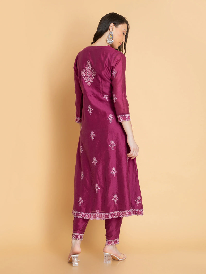 Women Red Wine chikankari-embroidered-chanderi-3pc-angrakha-set-embellished-with-dori-latkan