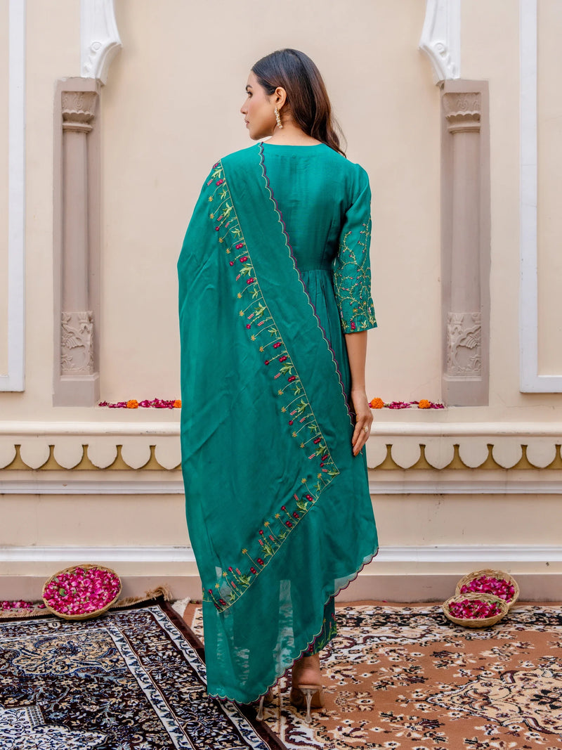 Women Rama Green muslin-silk-fusion-wear-3pc-alia-cut-set