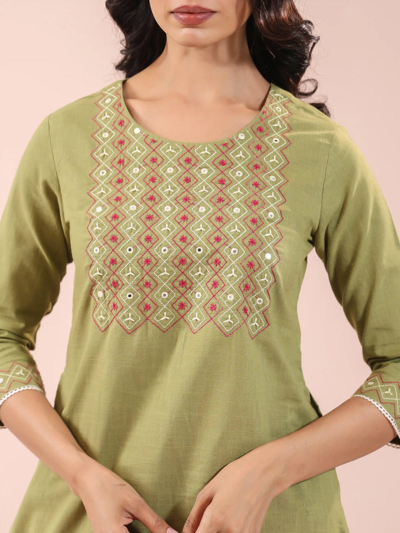 Women Woodbine knee-length-mirror-embroidered-kurti