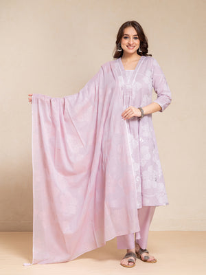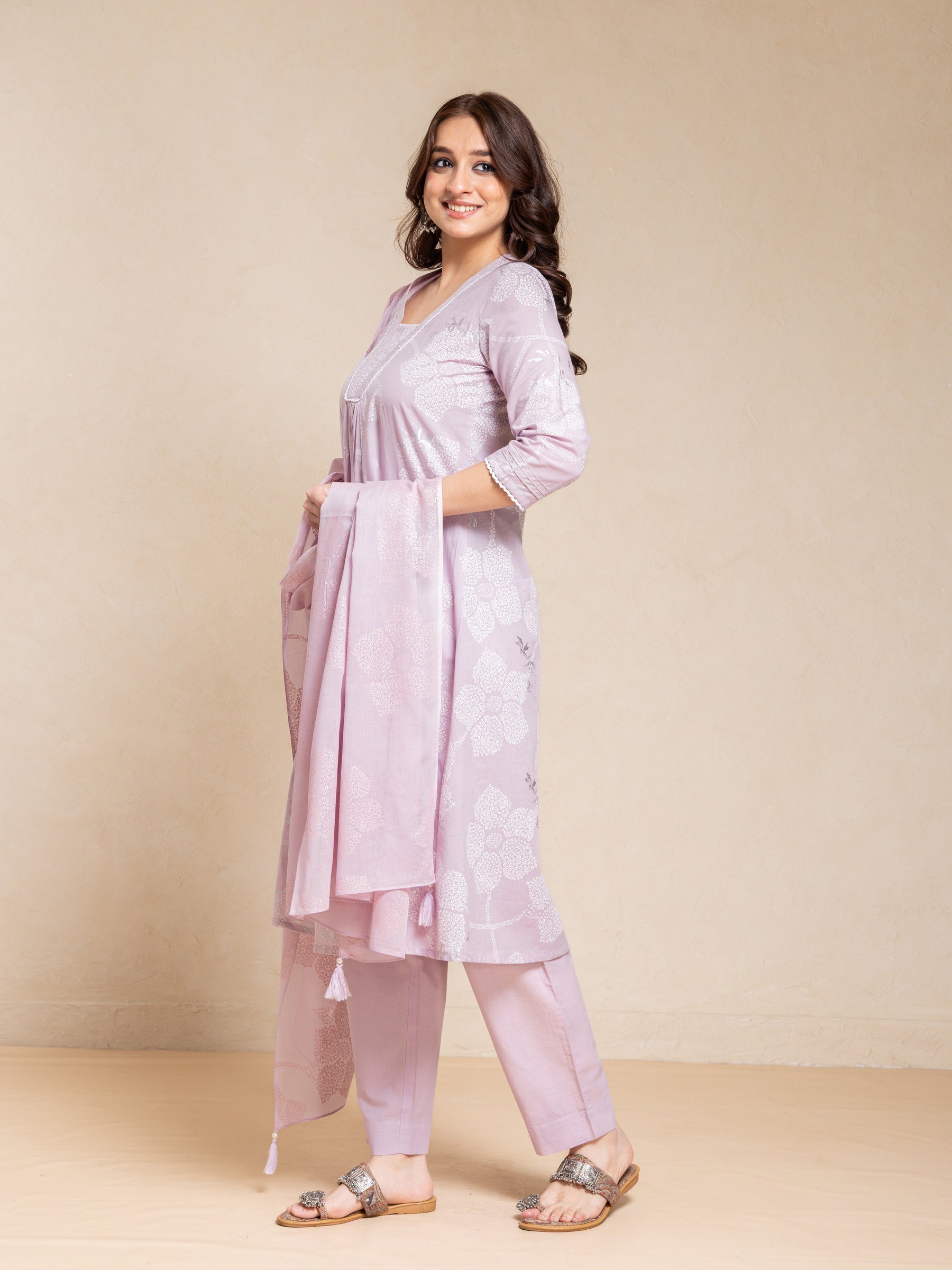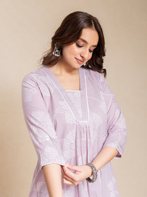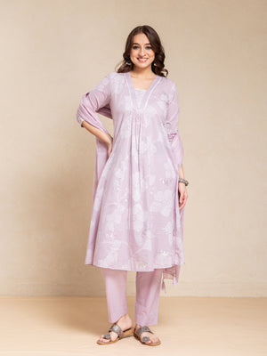 MUL COTTON KHADI PRINTED FLARED 3PC KURTA SET