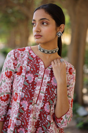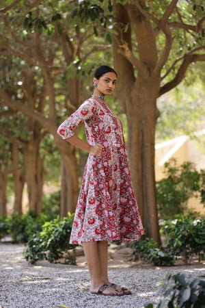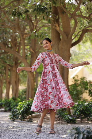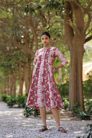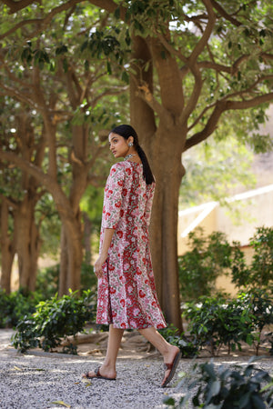 Mul Cotton Printed Kalidar Kurti with Zari Work