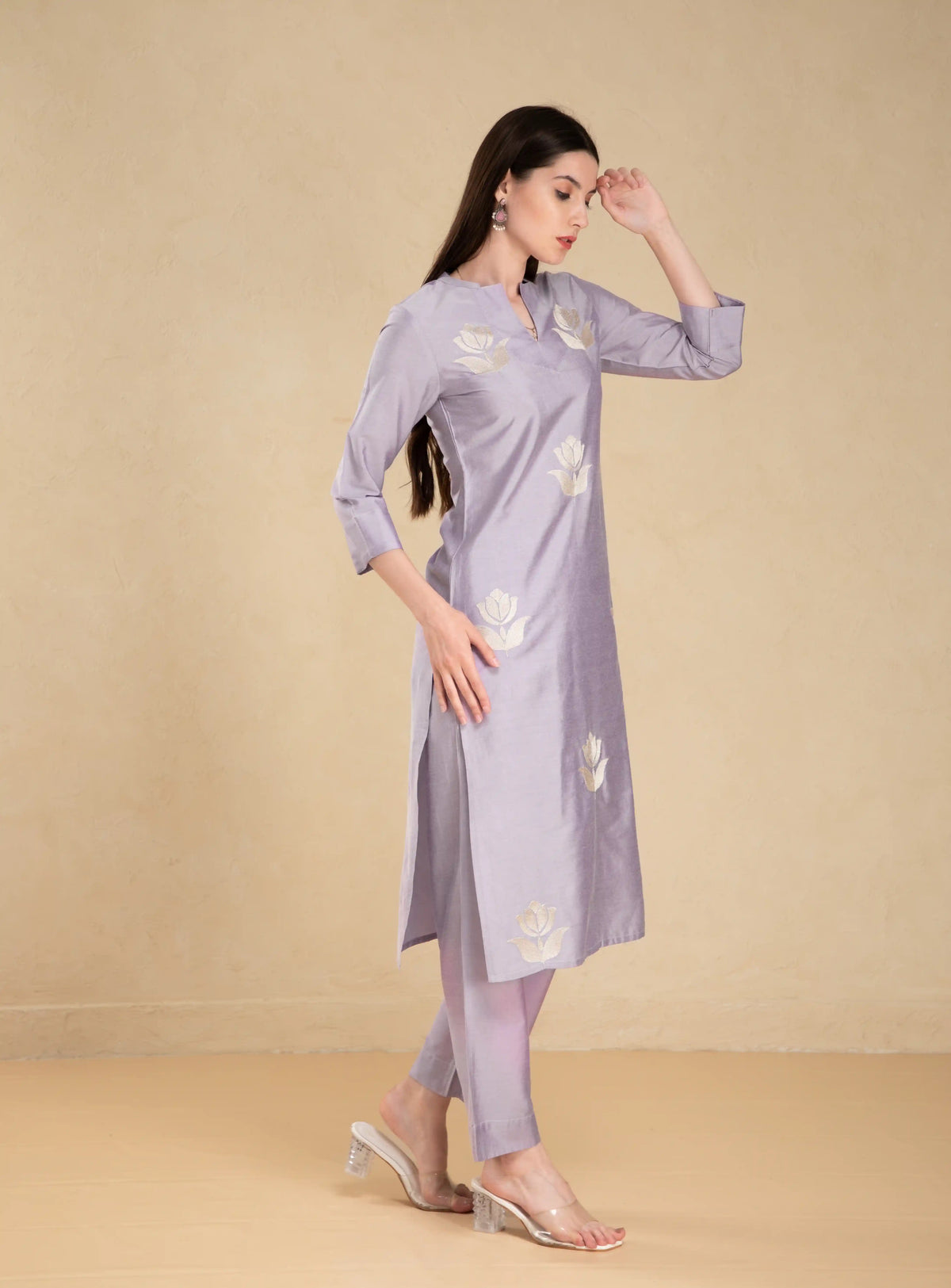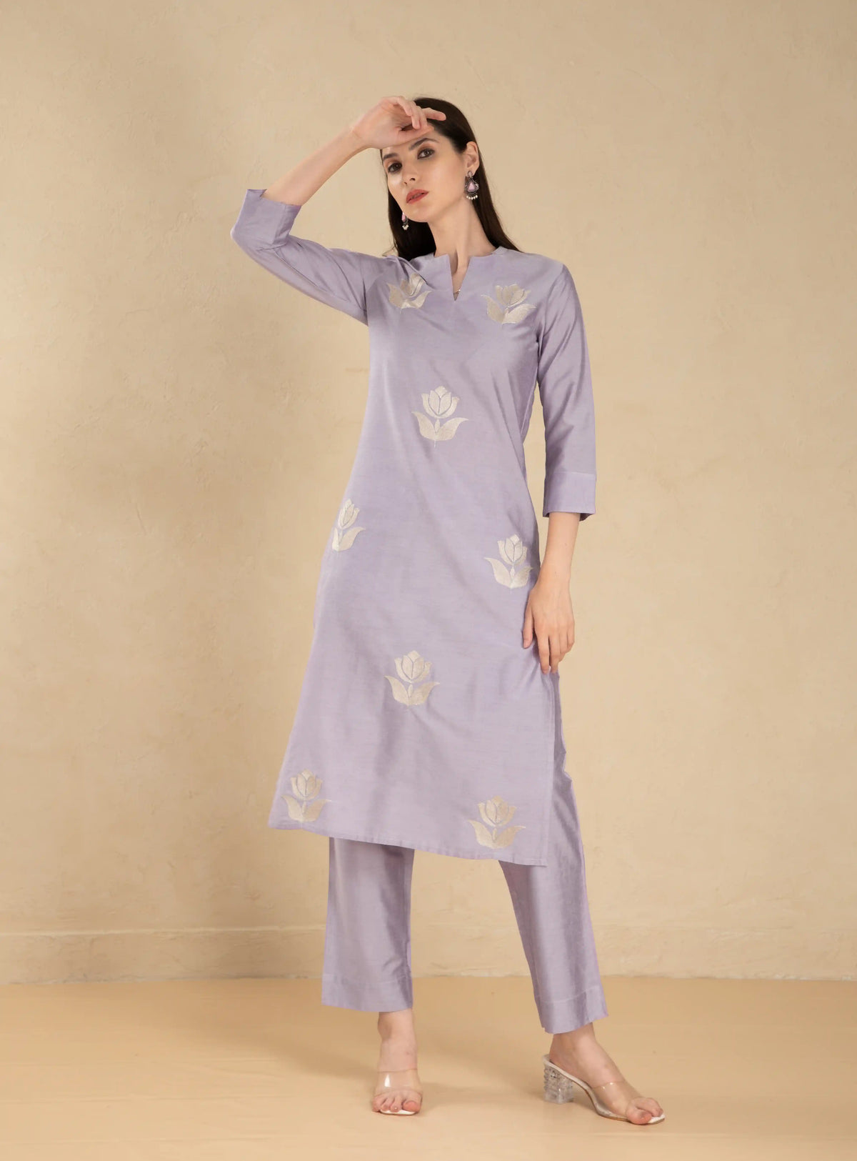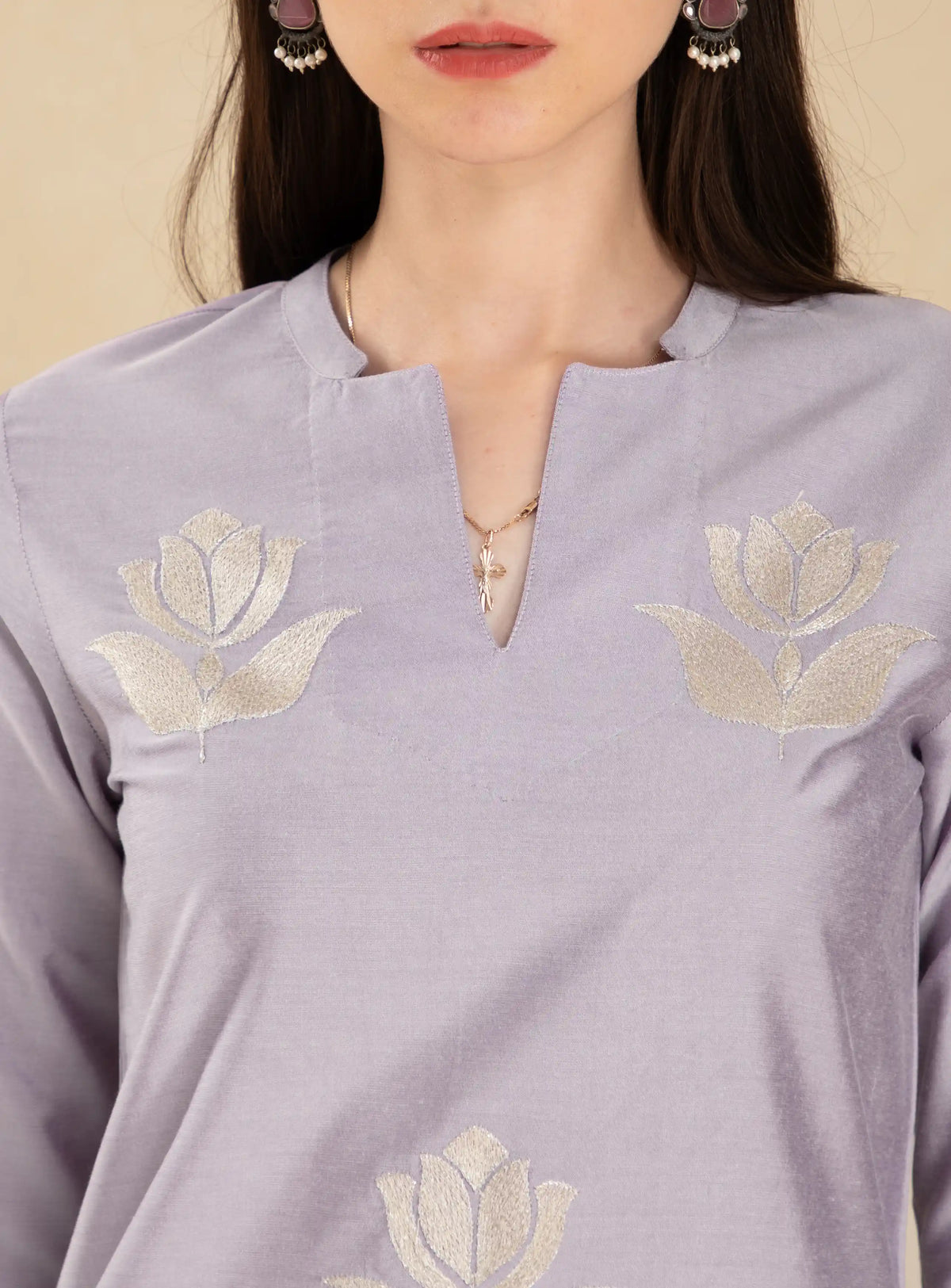 Women Lavender silk-base-2pc-kurta-set-with-embroidery-details