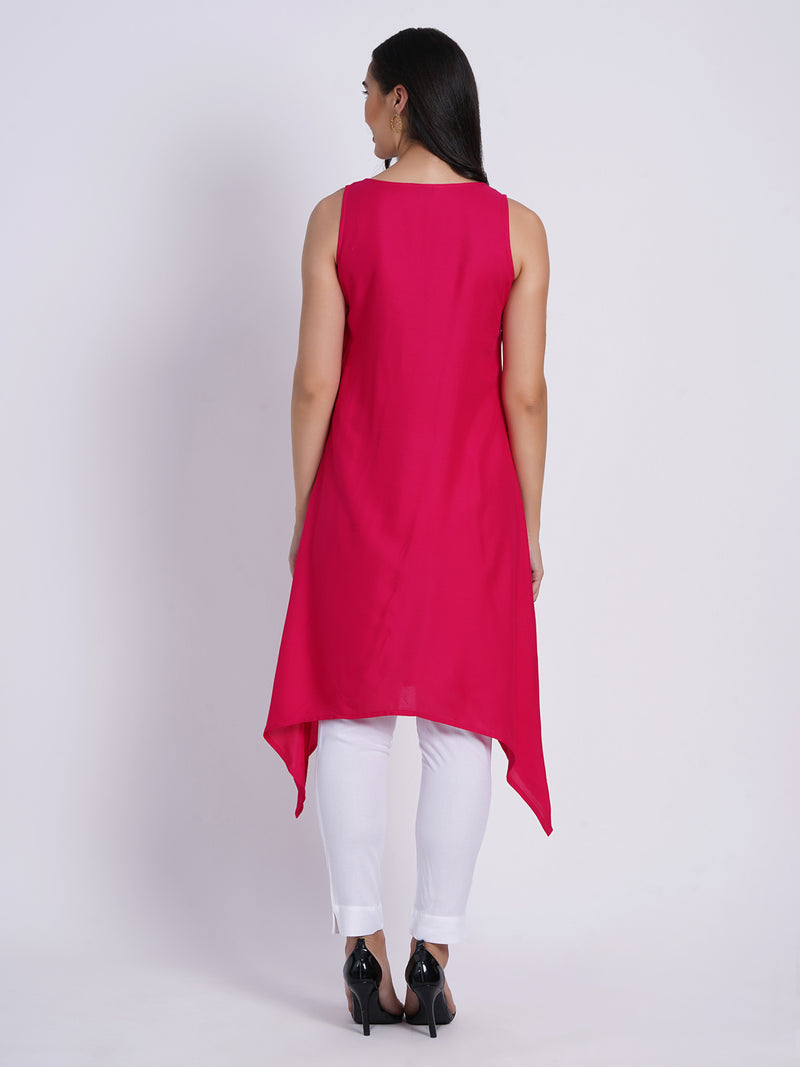 SUTI WOMEN RAYON EMBROIDERED SLEEVELESS A-LINE LONG KURTI