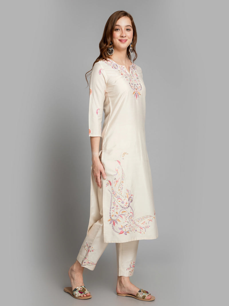 RICH SILK 2 PCS KURTA PANT SET DETAILED WITH CRAFT EMBROIDERY