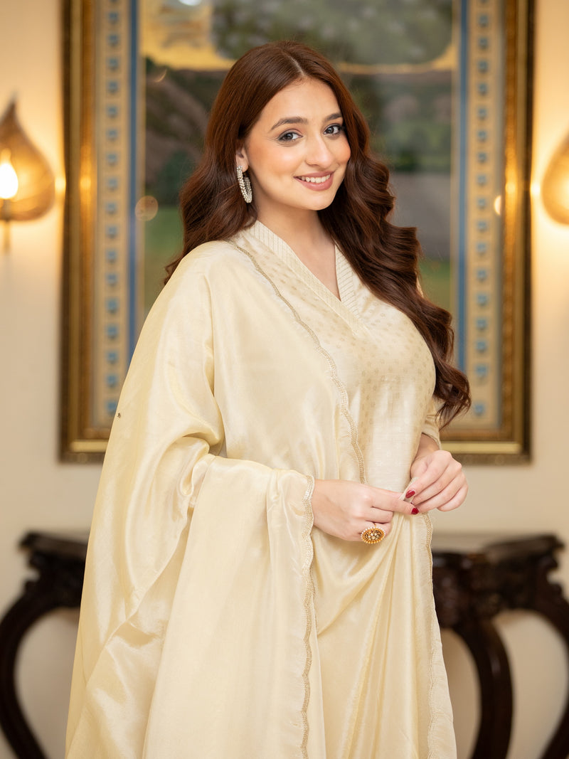 RICH SILK 3PC KURTA PANT SET WITH SCALLOPED DUPATTA