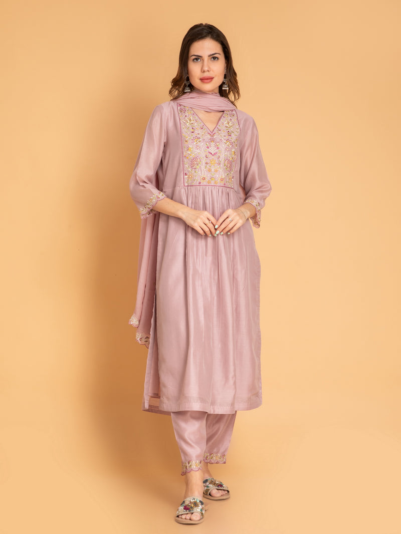 Chanderi Silk 3Pc Embroidered Kurta Pant Set with Dupatta