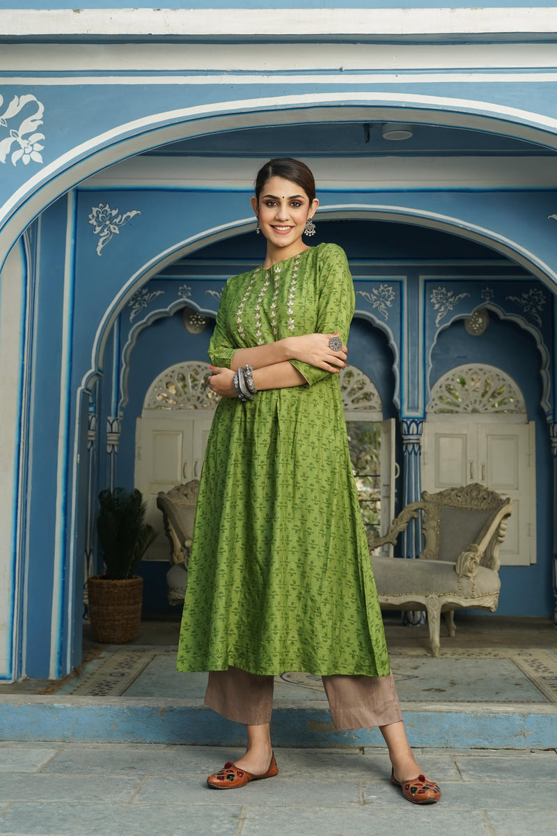 PRINTED AND HAND EMBELLISHED KURTA PANT SET