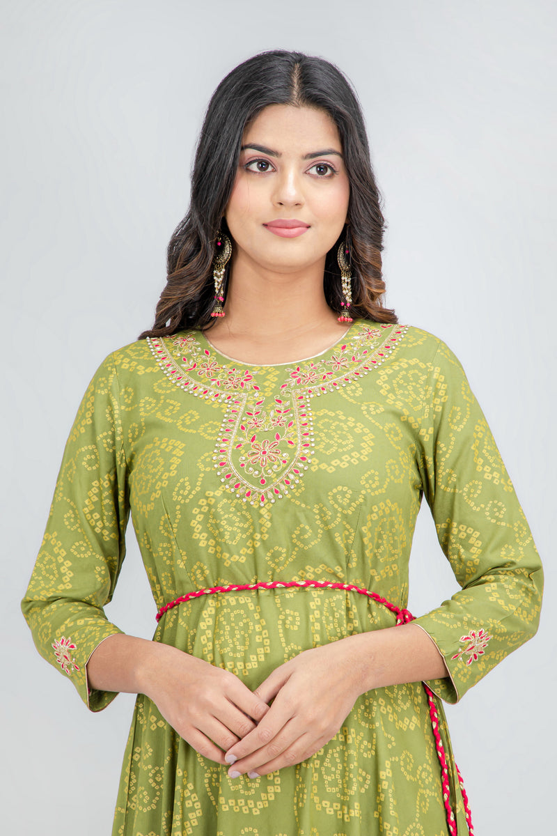 Hand Embellished Bandhej Printed Floor-Length Dress