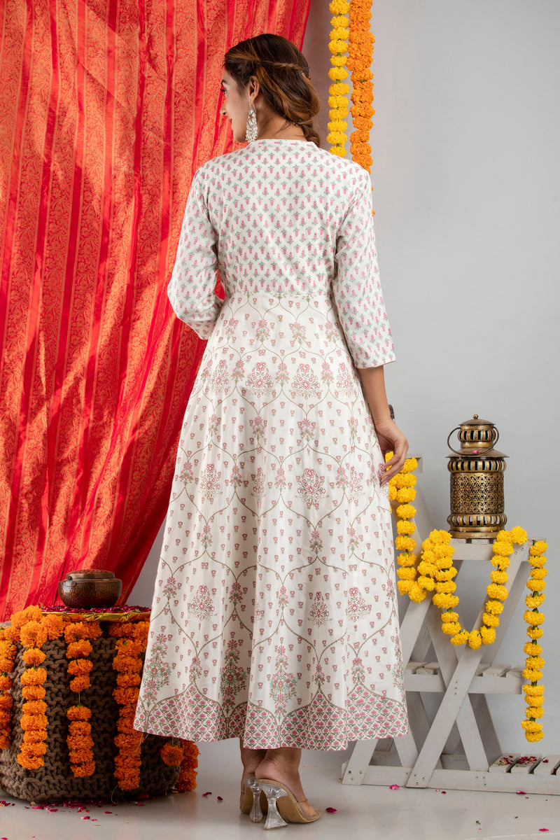 Gold Printed 3Pc ANARkali Kurta Set with Zari Couching Yoke