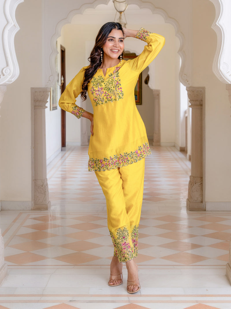CHANDERI SILK CHIKANKARI EMBROIDERED FASHION CO-ORD SET