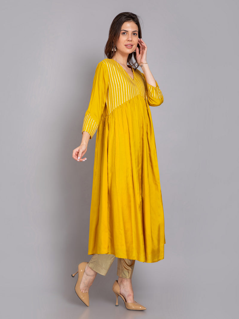 Rayon 2-Piece Kurta Set With Gota Embroidery
