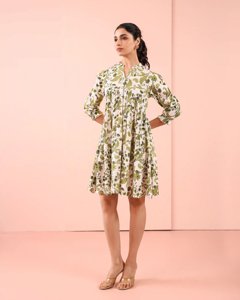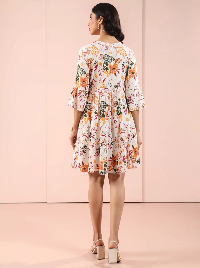 ABSTRACT PRINTED FLAIRED SHORT DRESS