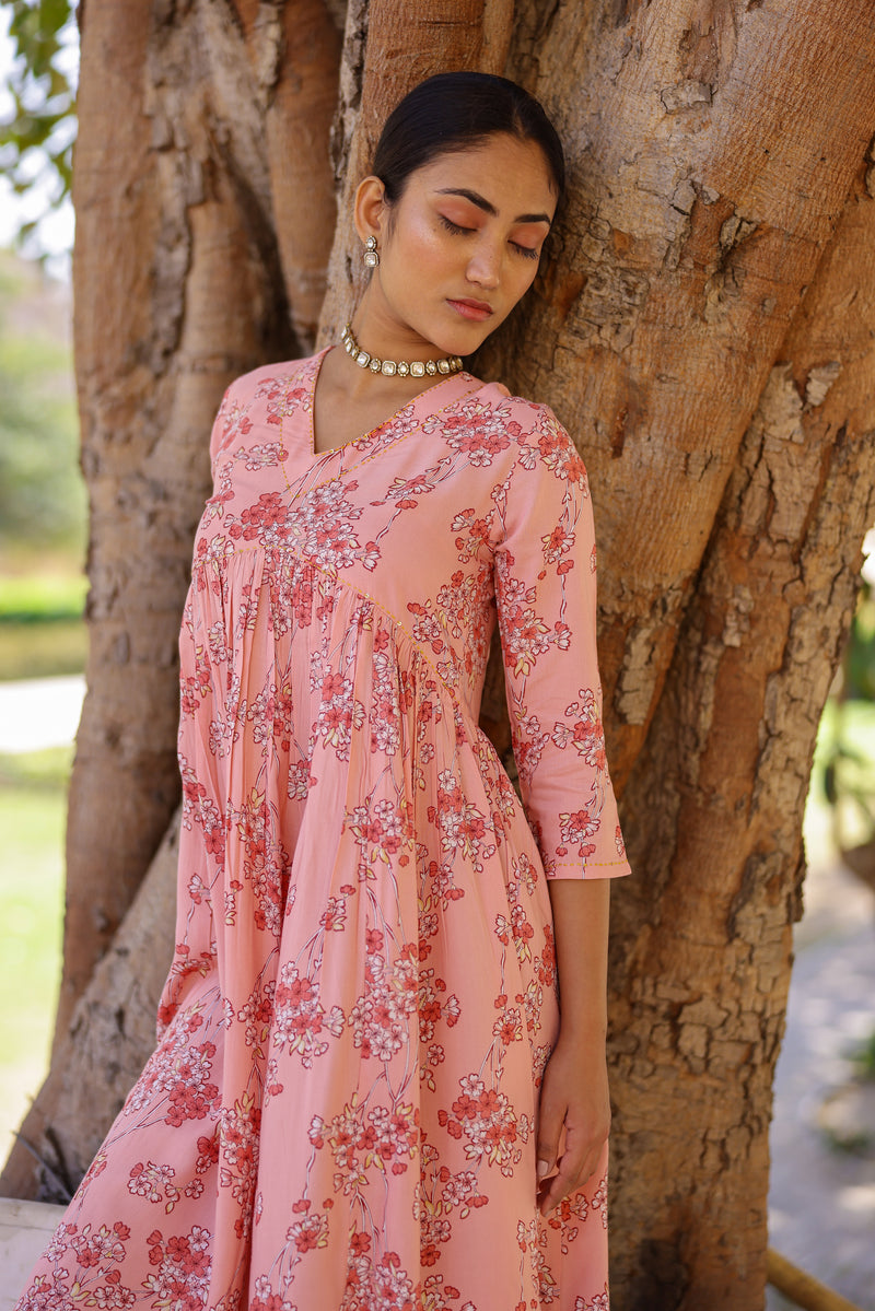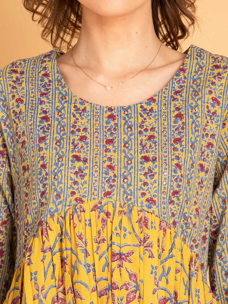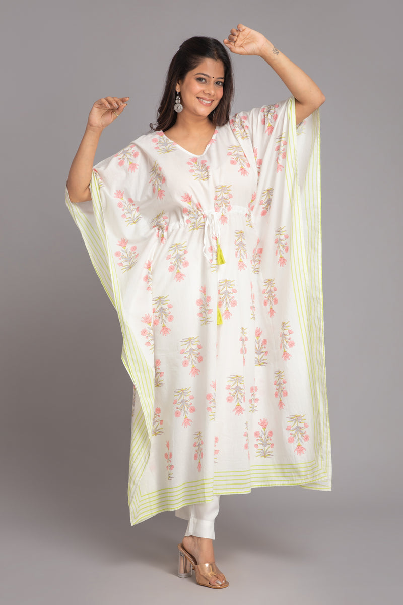 Suti Women Mul Cotton Beautiful Printed Kaftan With Drawstring At Waist