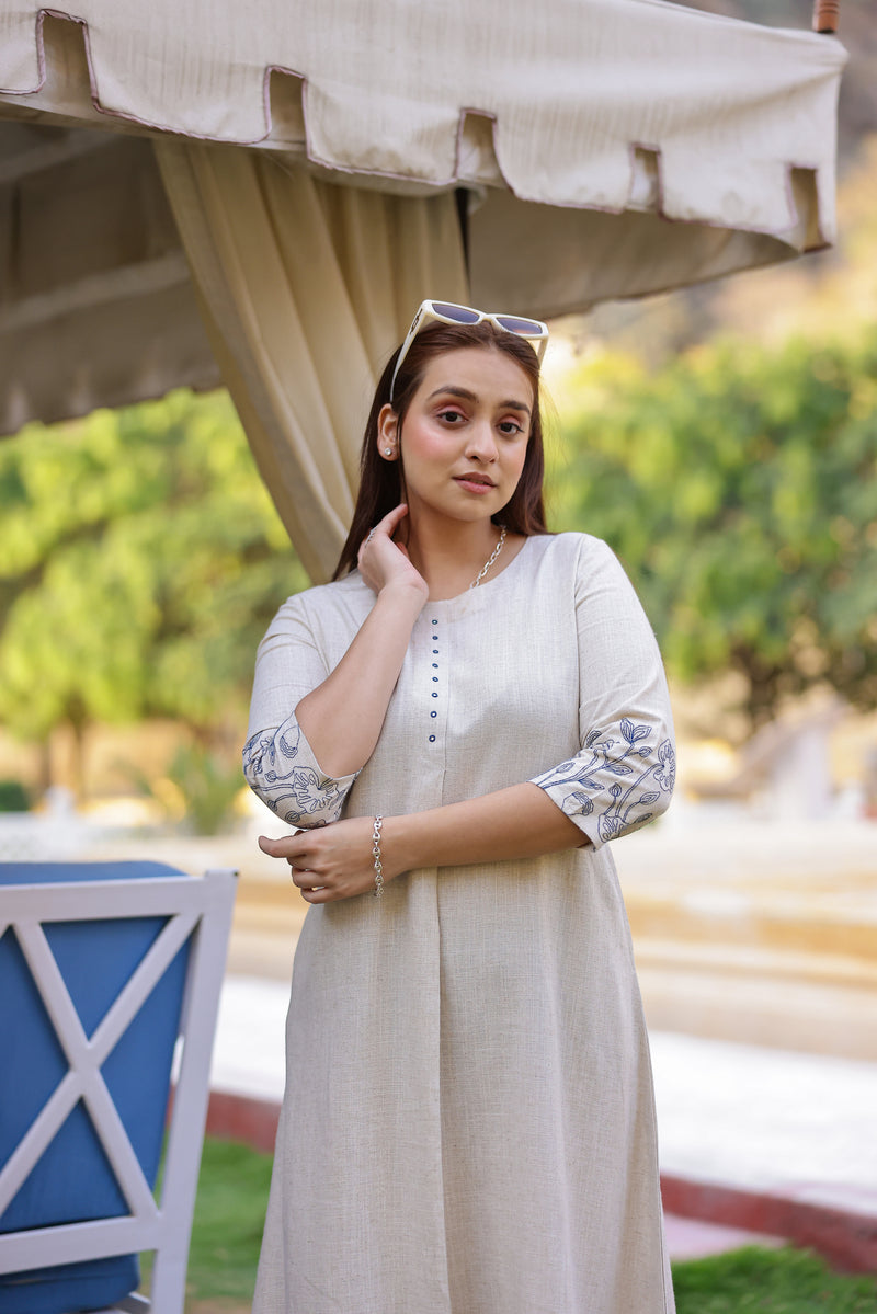Suti Women Rayon Linen Dress Tunic with Embroidered Sleeves