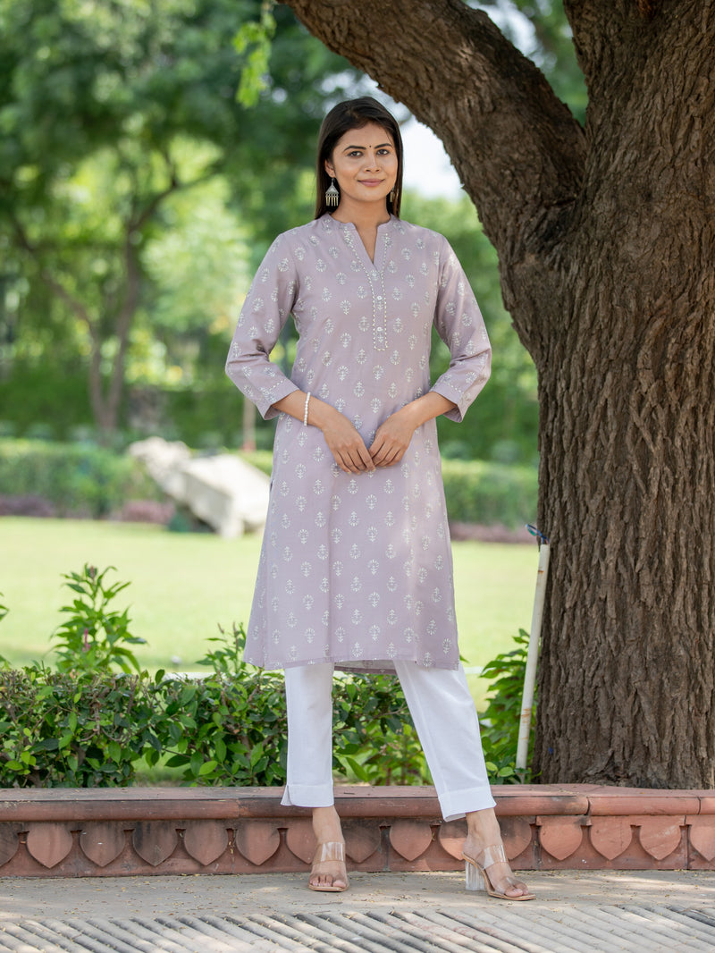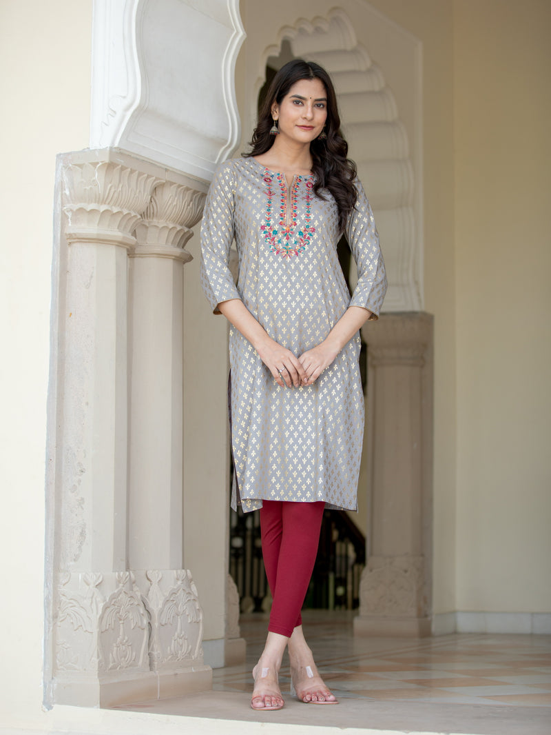 FOIL GOLD PRINTED EMBROIDERY EMBELLISHED STRAIGHT KURTI