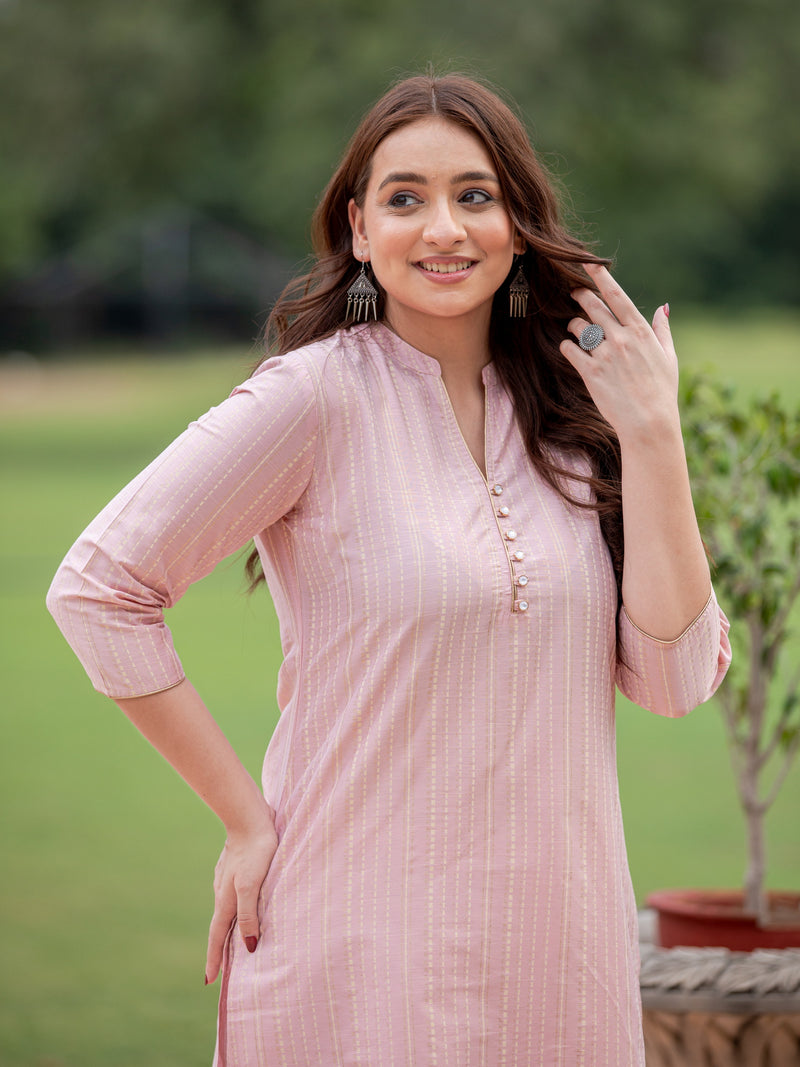 KHADI WITH GOLD PRINTED STRAIGHT KURTI
