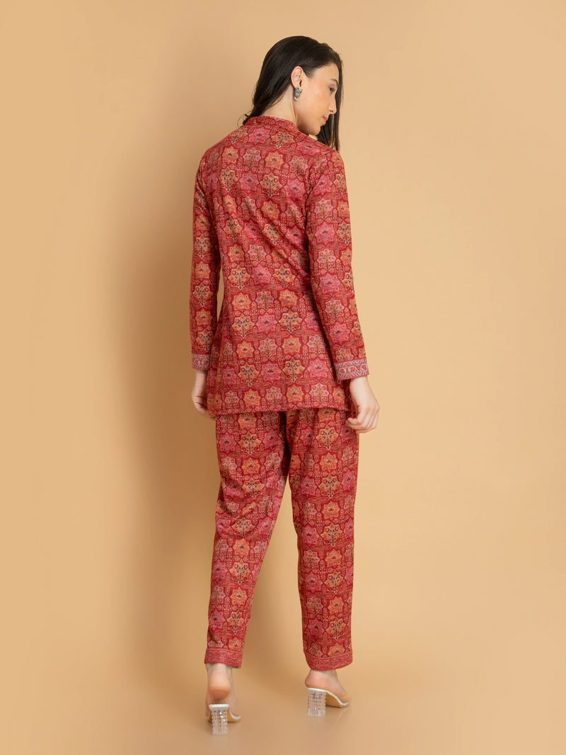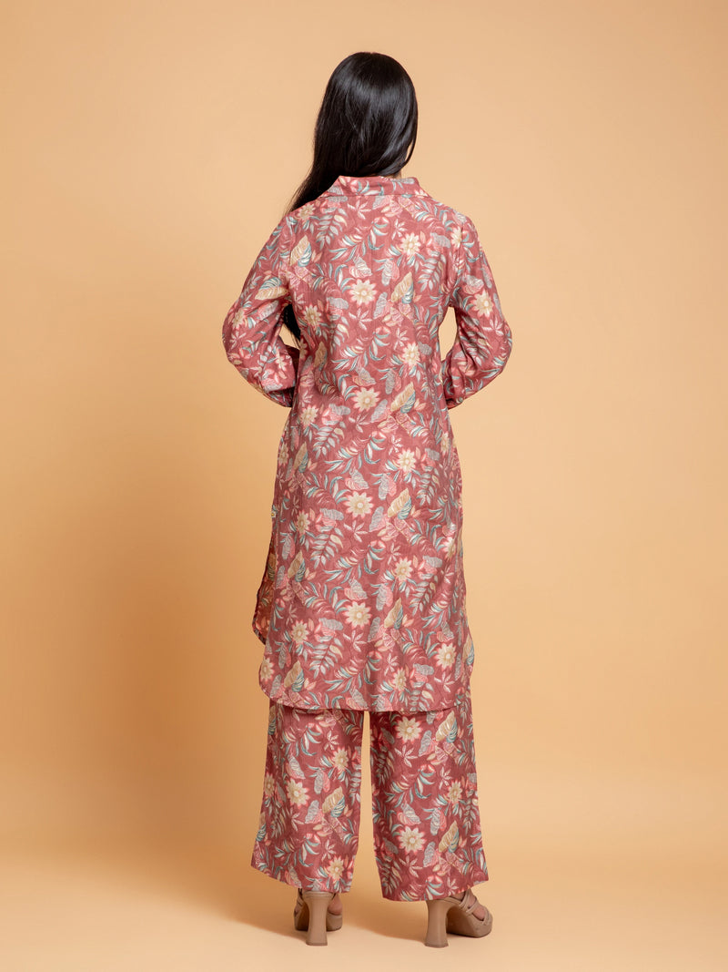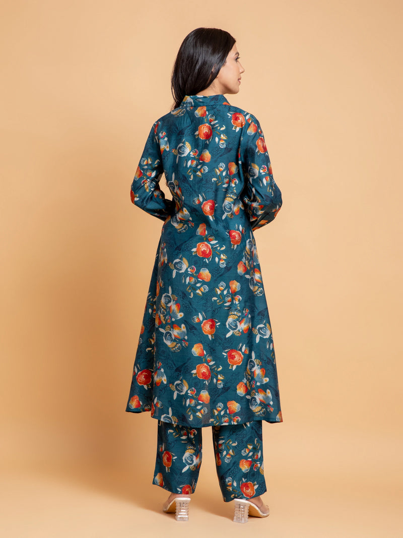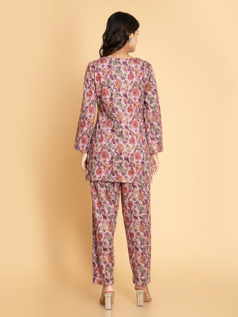 FLORAL PRINTED 2PC CO-ORD SET DETAILED WITH ADDA WORK CRAFT BUTTONS