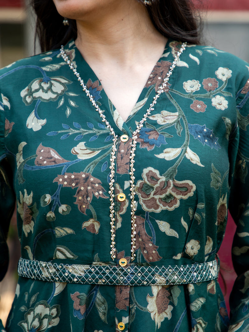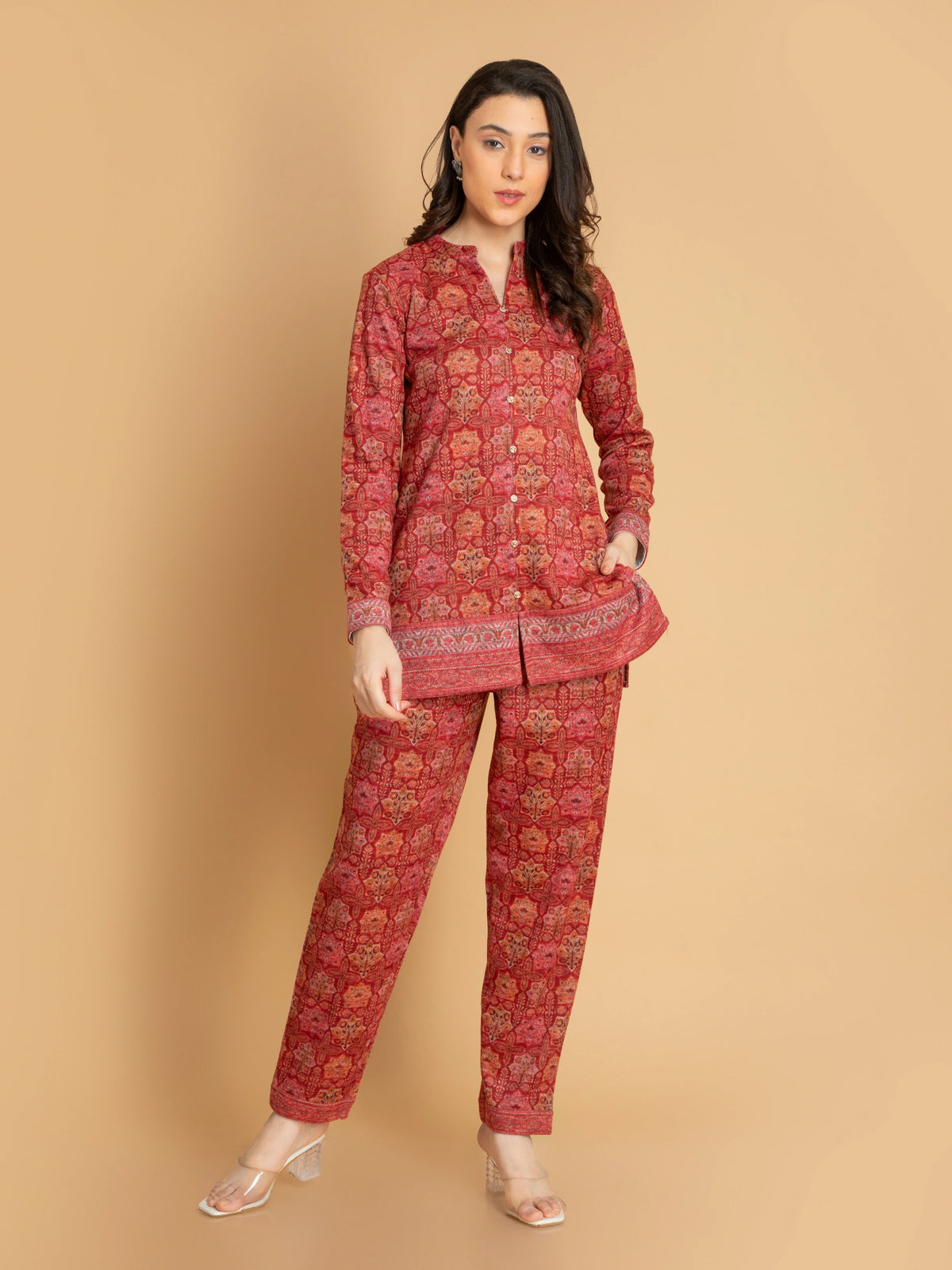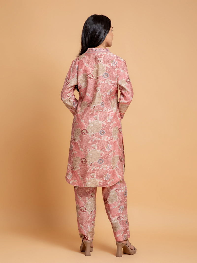FLORAL PRINTED 2PC CO-ORD SET DETAILED WITH ADDA WORK CRAFT BUTTONS