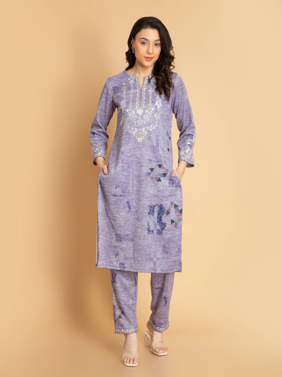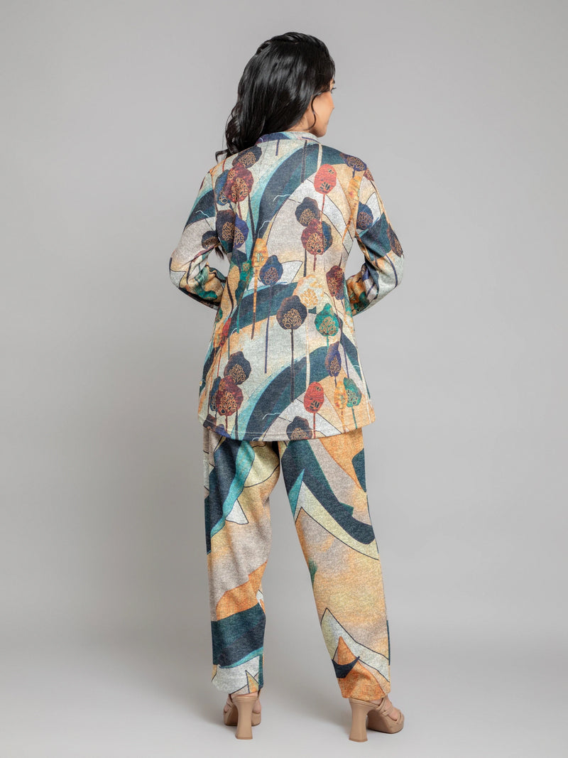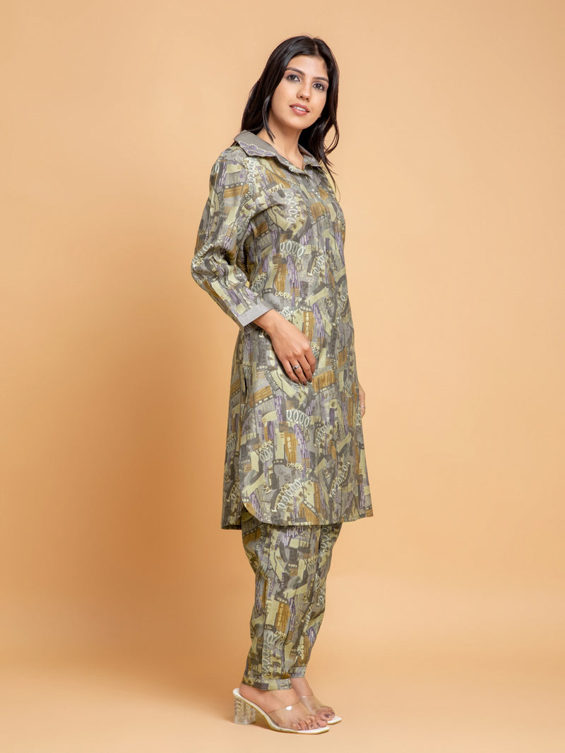 ABSTRACT PRINT 2PC CO-ORD SET WITH COLLAR EMBROIDERY