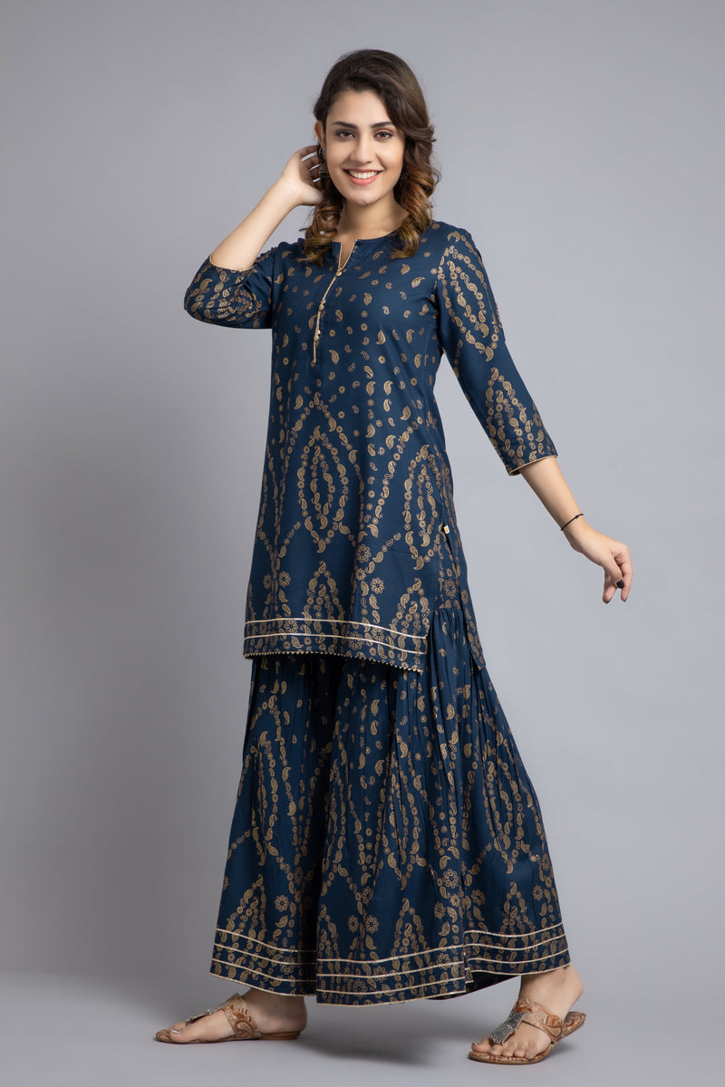 Mul Cotton Sleeveless Kurti with Palazzo Pants