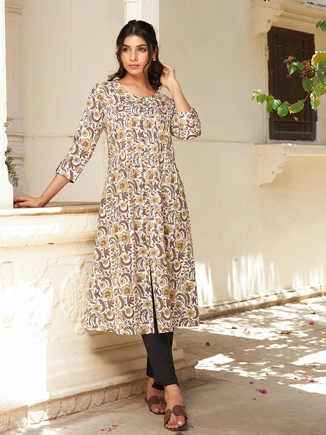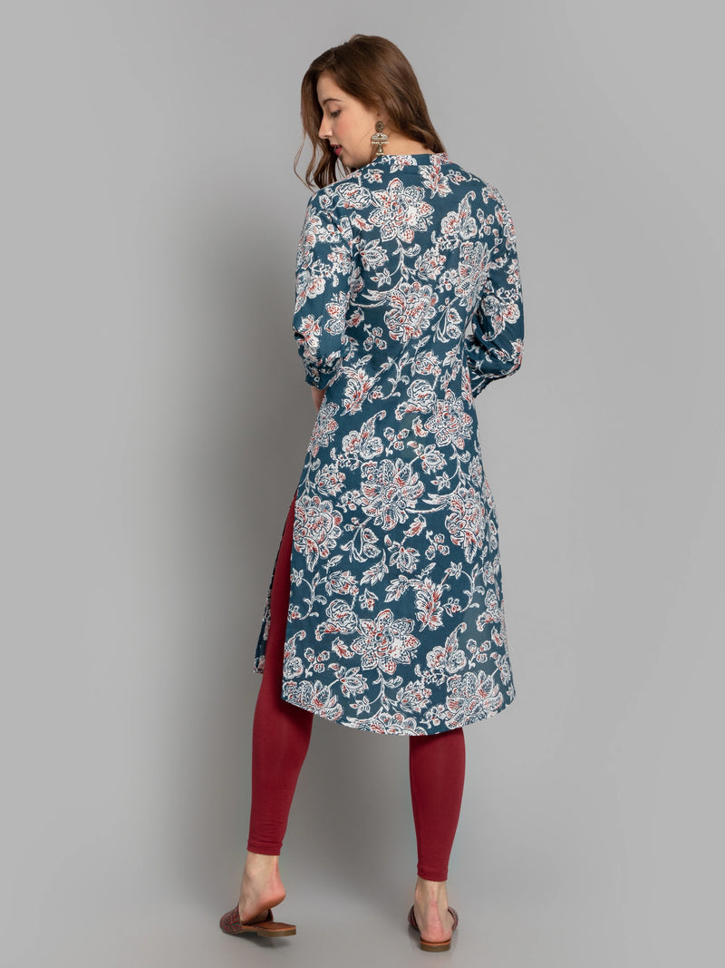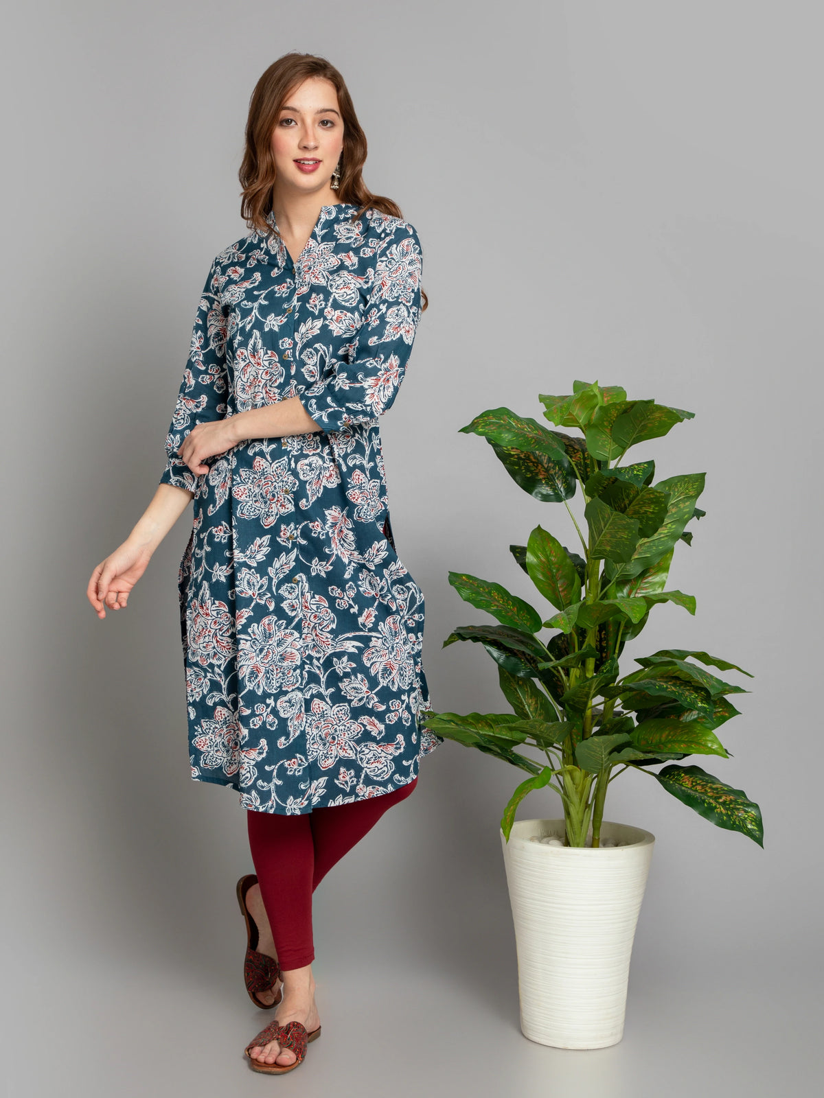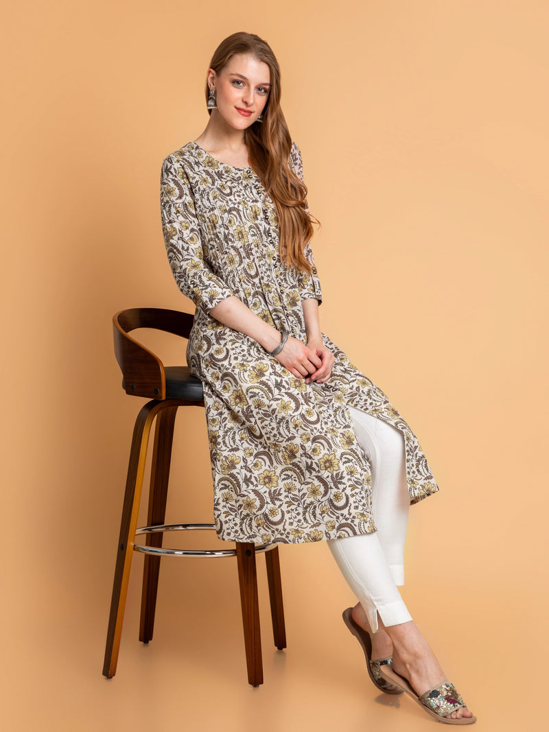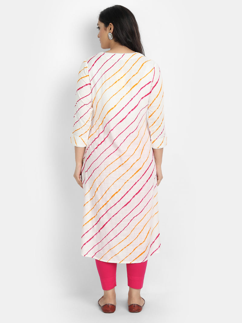 Lehariya Printed Long Kurti with Lace & Craft Buttons