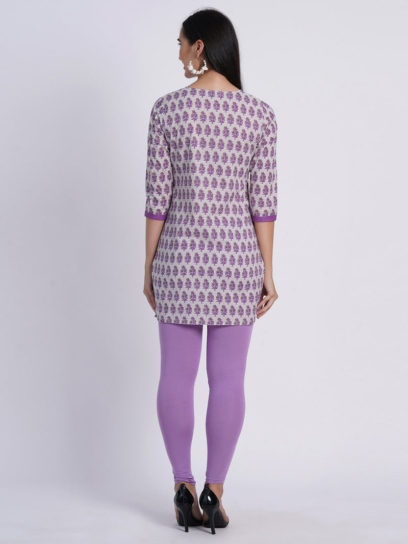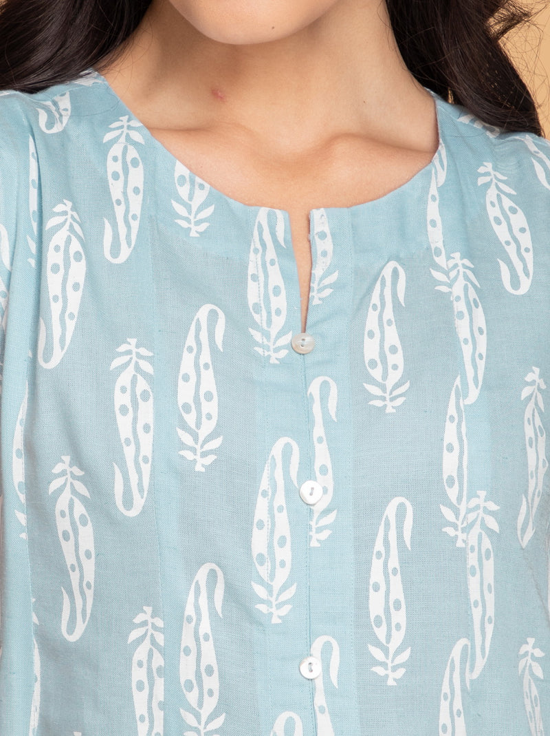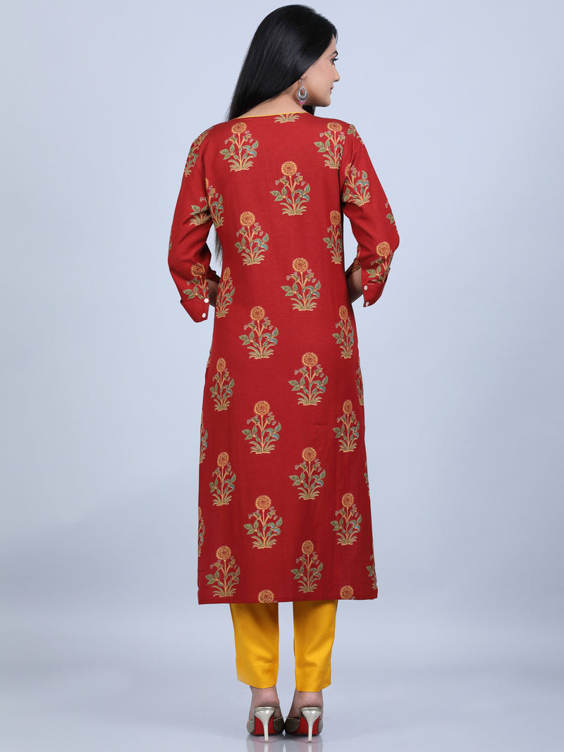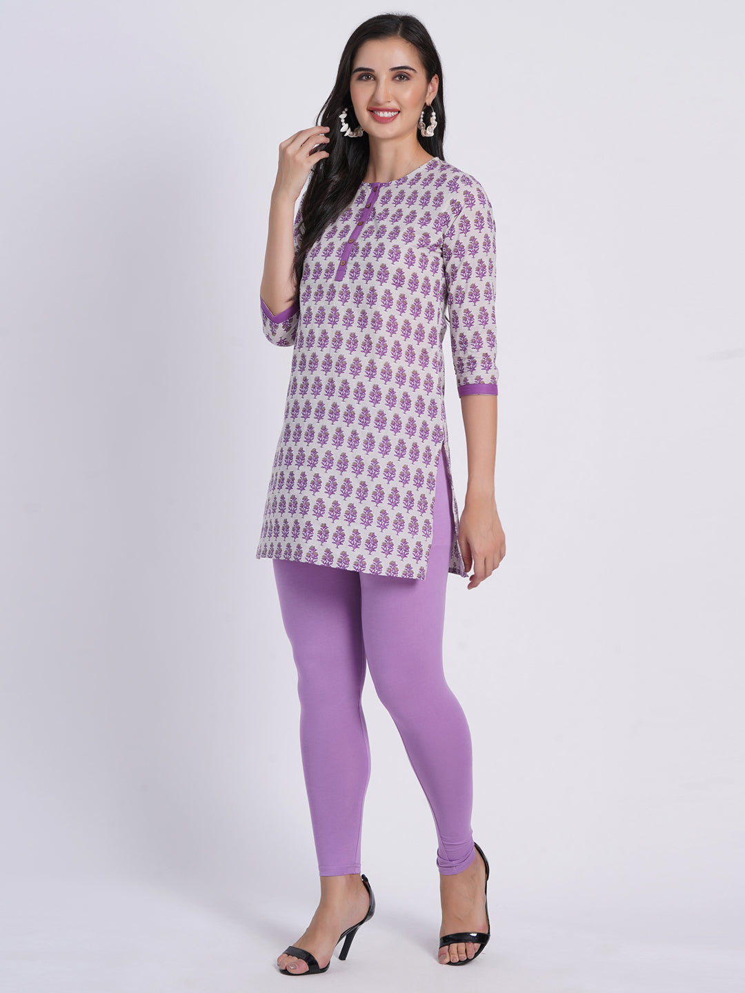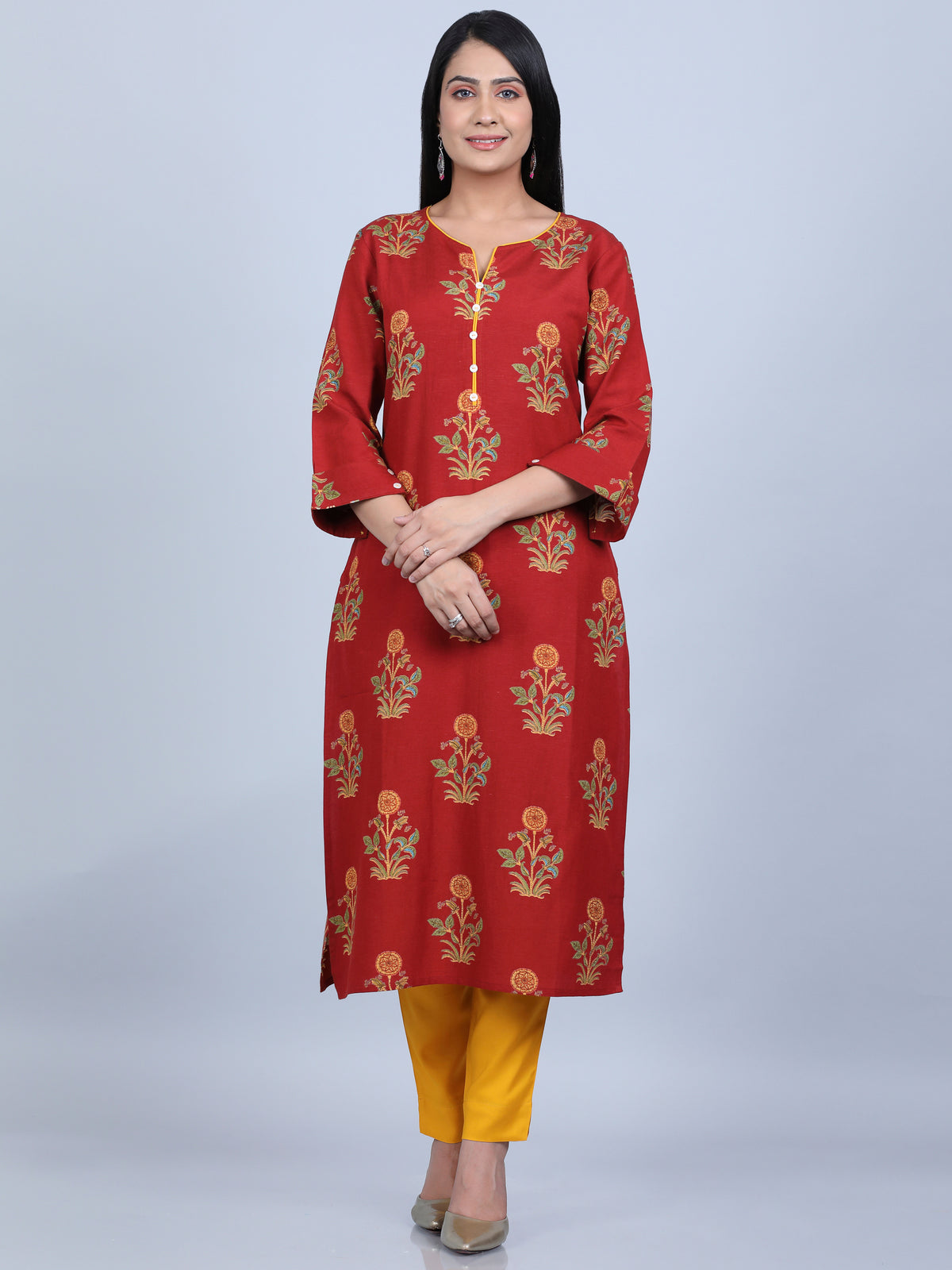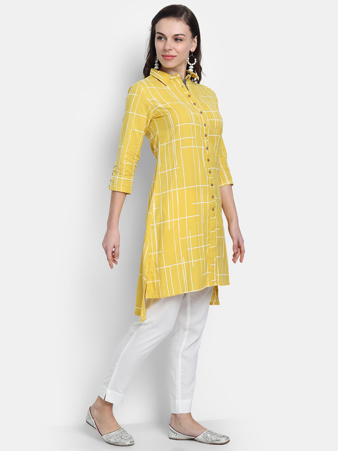Lehariya Printed Long Kurti with Lace & Craft Buttons