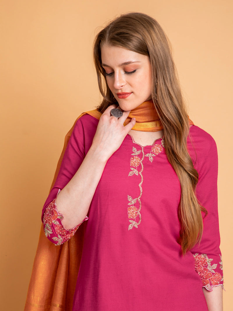 Rich Silk 3Pc Embroidered Kurta Pant Set with Dupatta