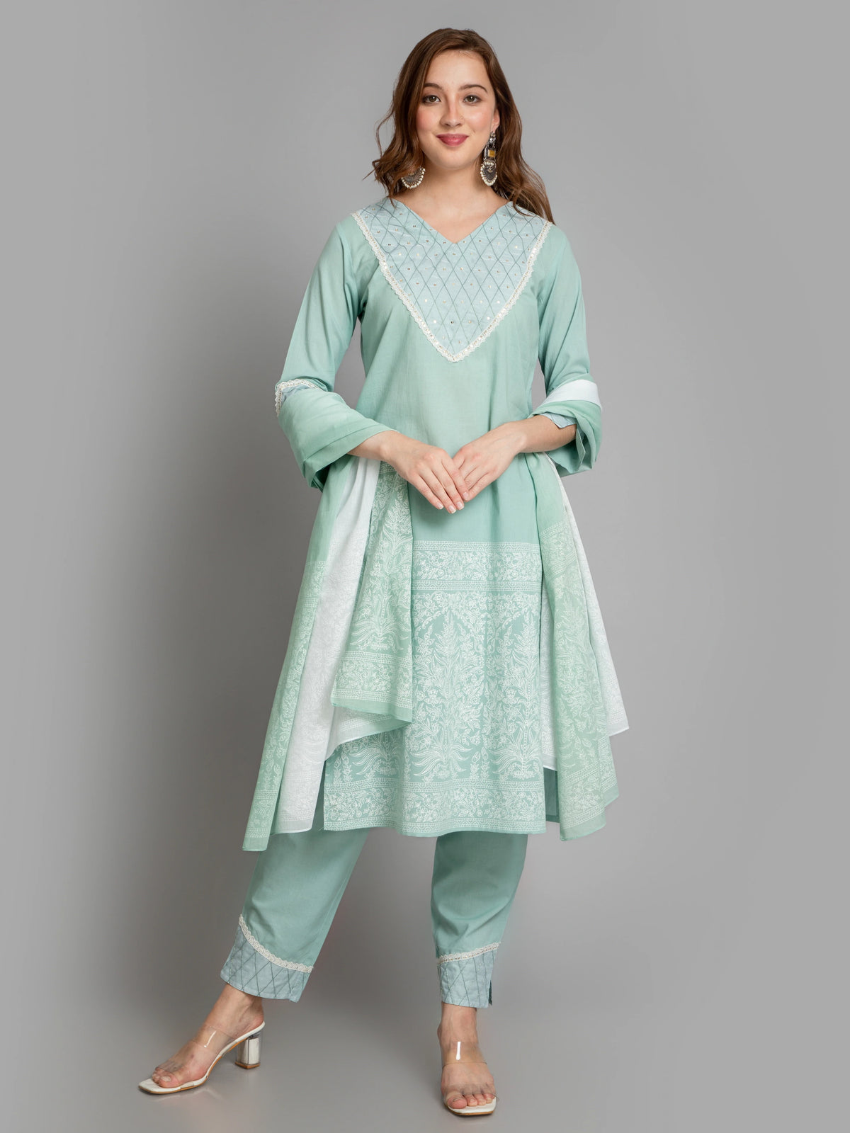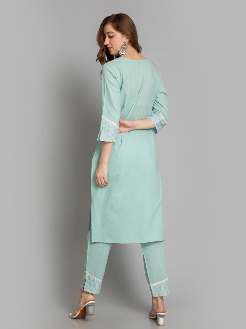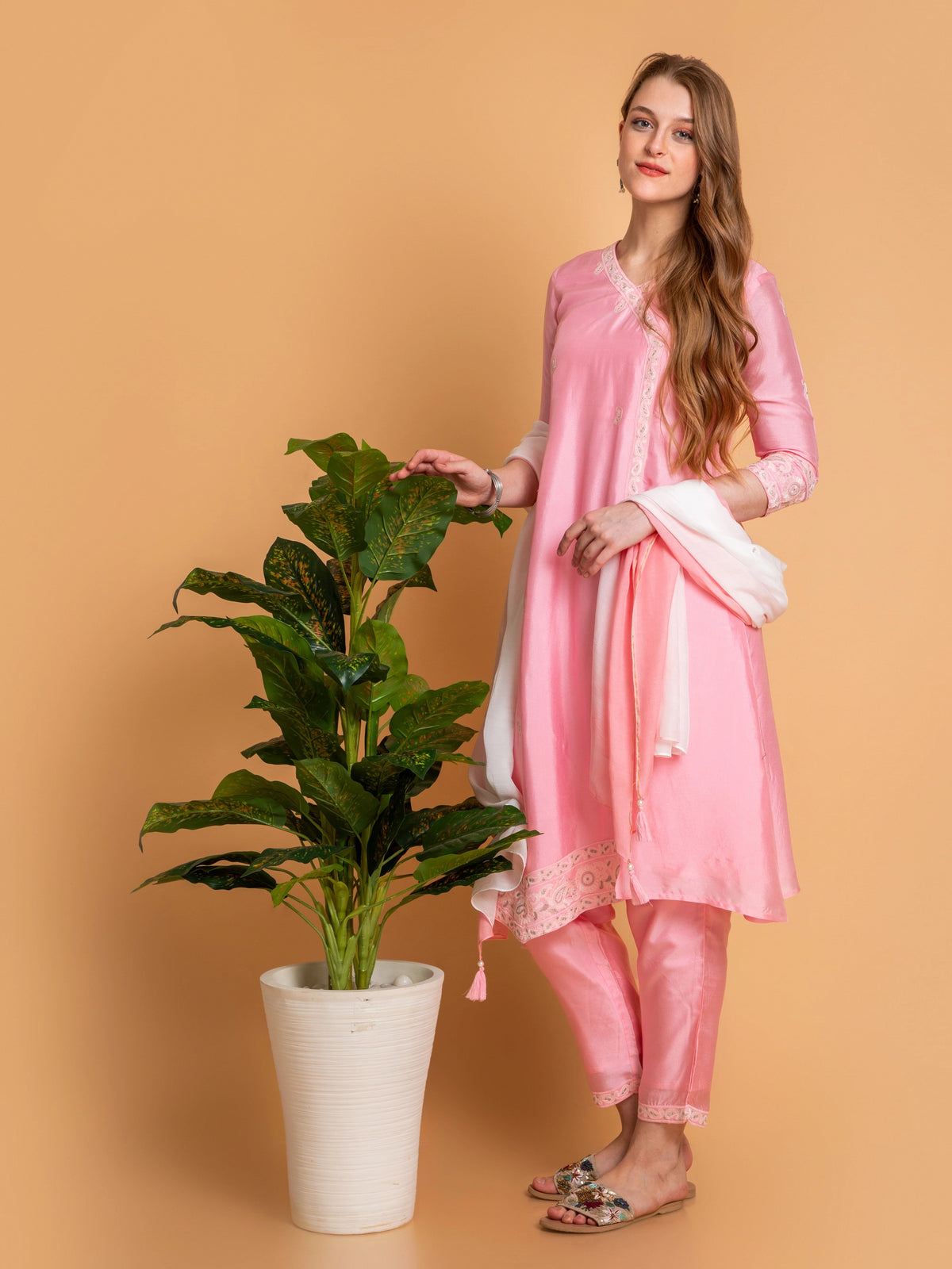Scallop Embroidery 3Pc Kurta Pant Set with Adda Work