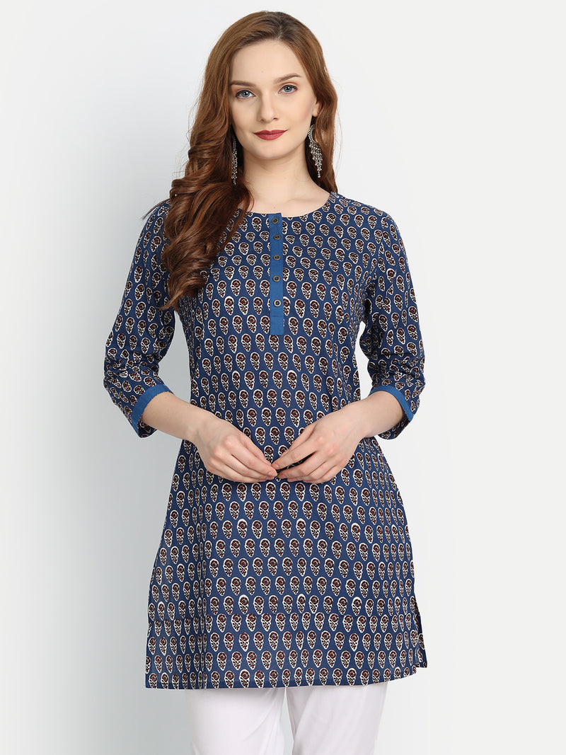 SUTI WOMEN MUL-COTTON INDIGO PRINT KURTA