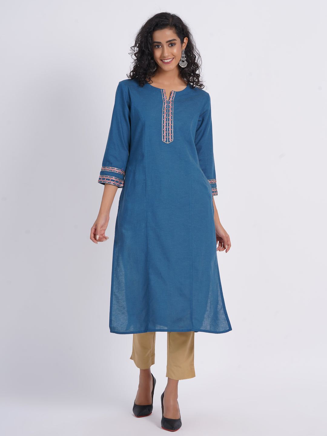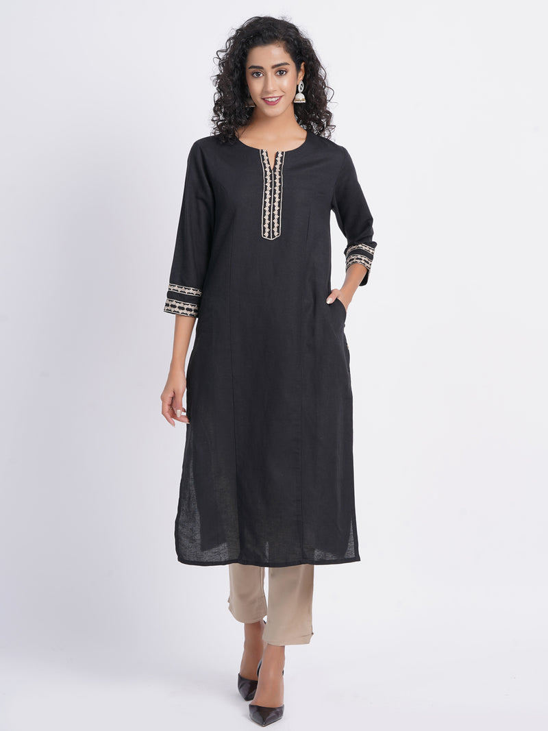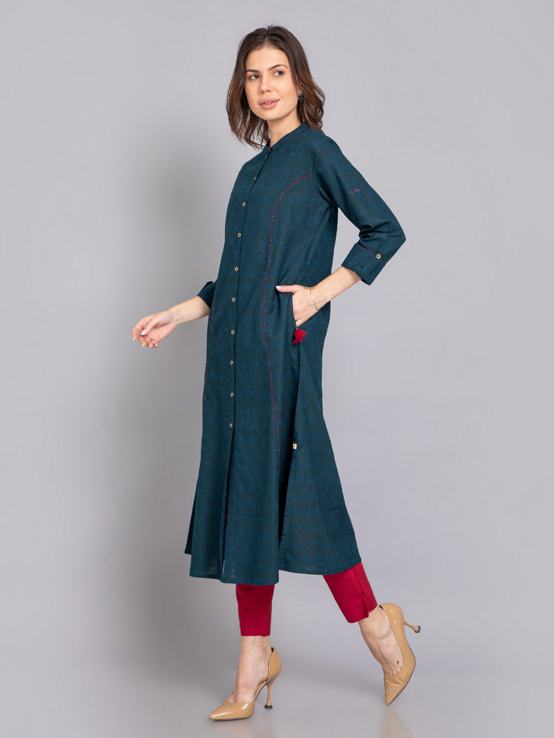 Rayon Linen Blend Princess Kali Kurti with Contrast Embroidery