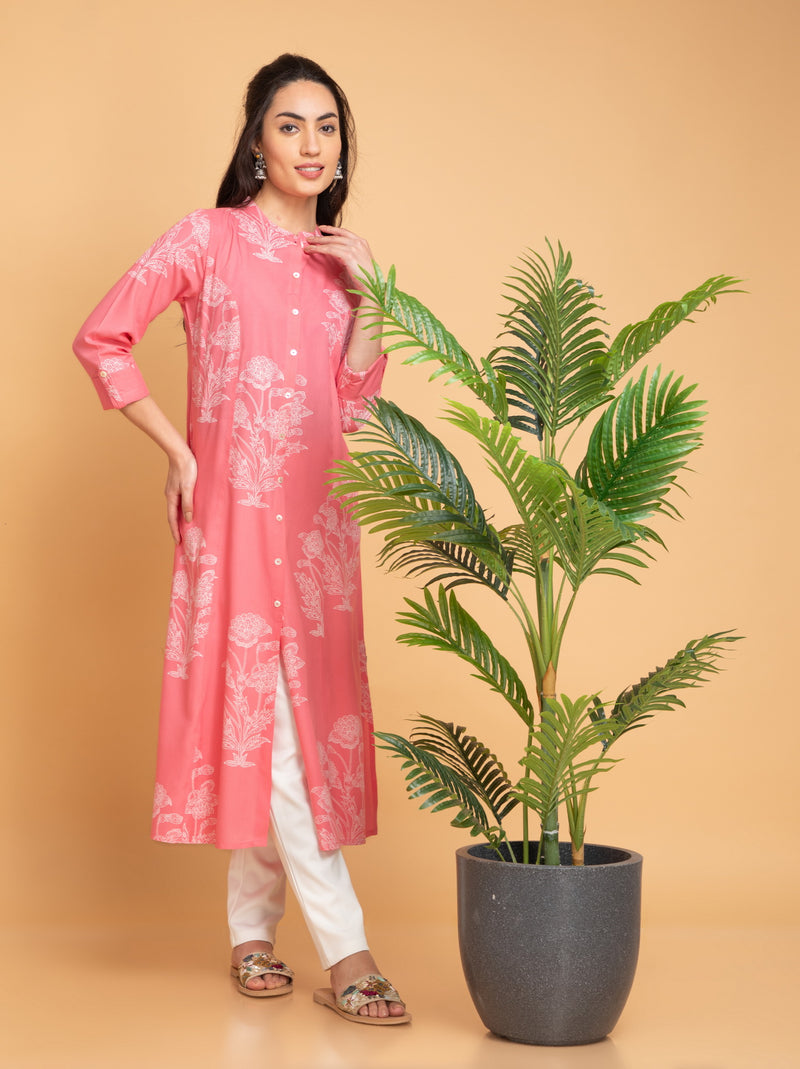 WORK WEAR STRAIGHT KURTI WITH PLACKET DETAILS