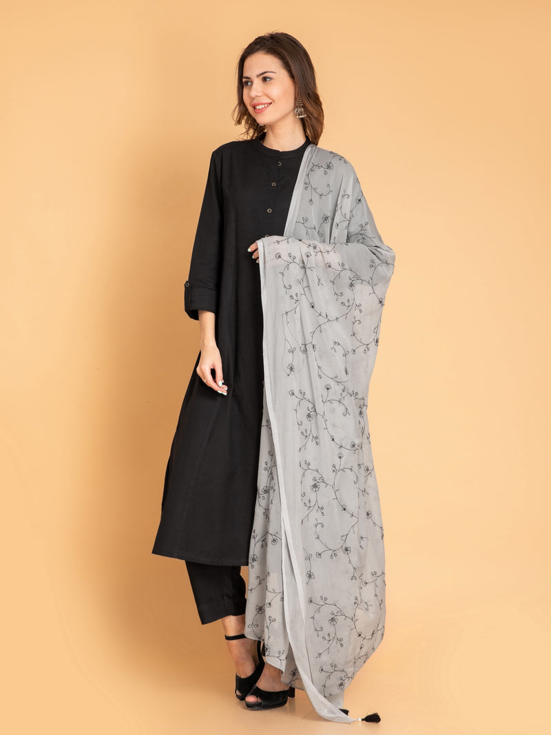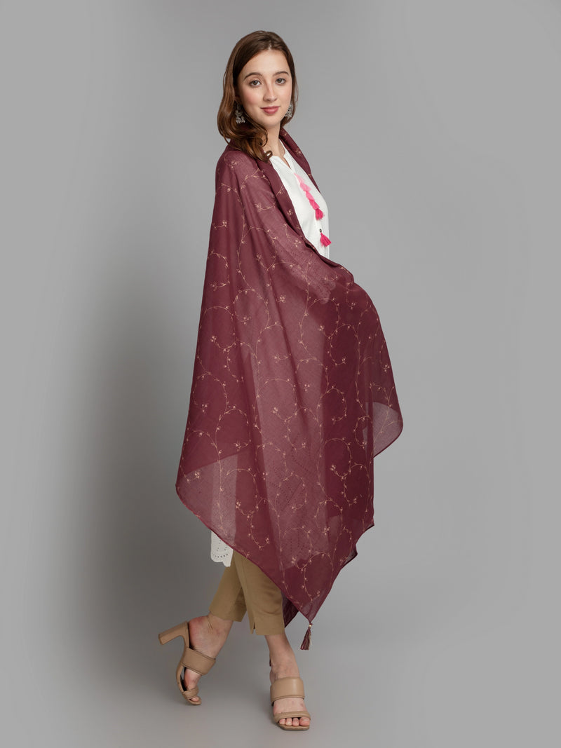 SOLID CHIFFON DUPATTA WITH POM-POM LACE