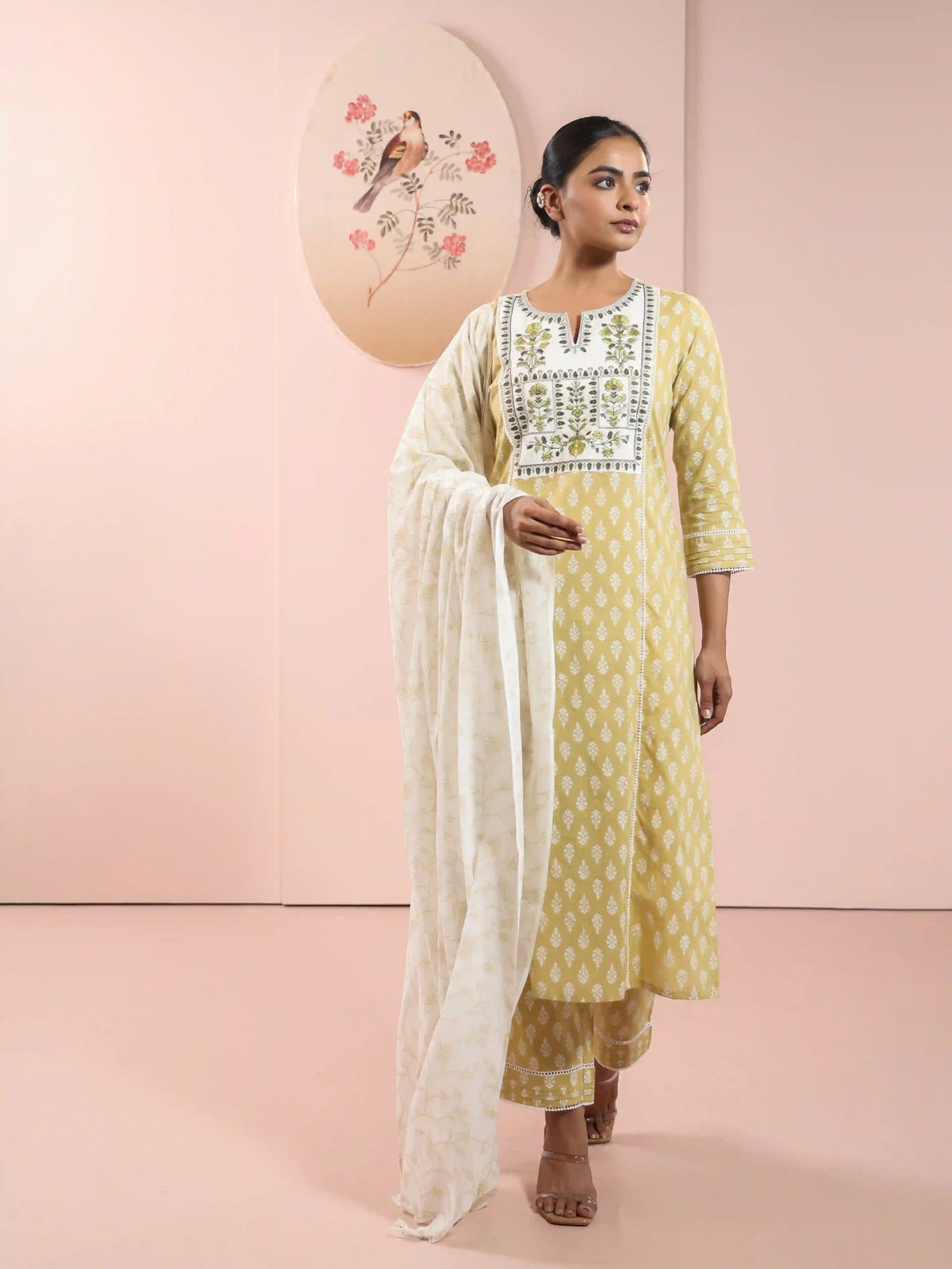 Embroidered Mul Cotton Kurta Set with Dupatta