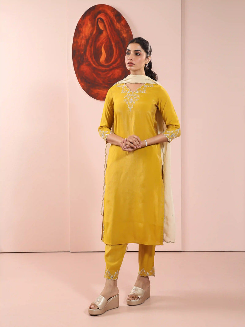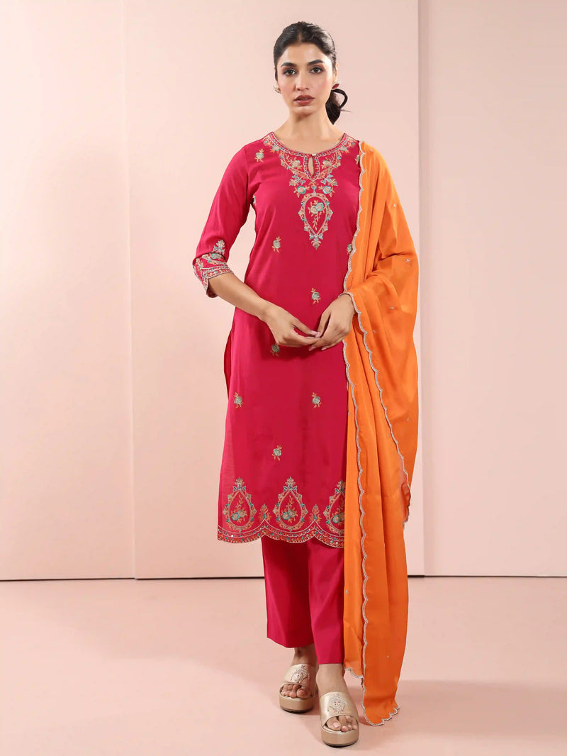 SILK BASE MIRROR EMBROIDERY 3PC KURTA SET